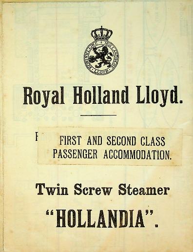Royal Holland Lloyd: Ca. 1909 Amsterdam, softcover folding-out with the details of the rooms on the 4 decks. In very good condition