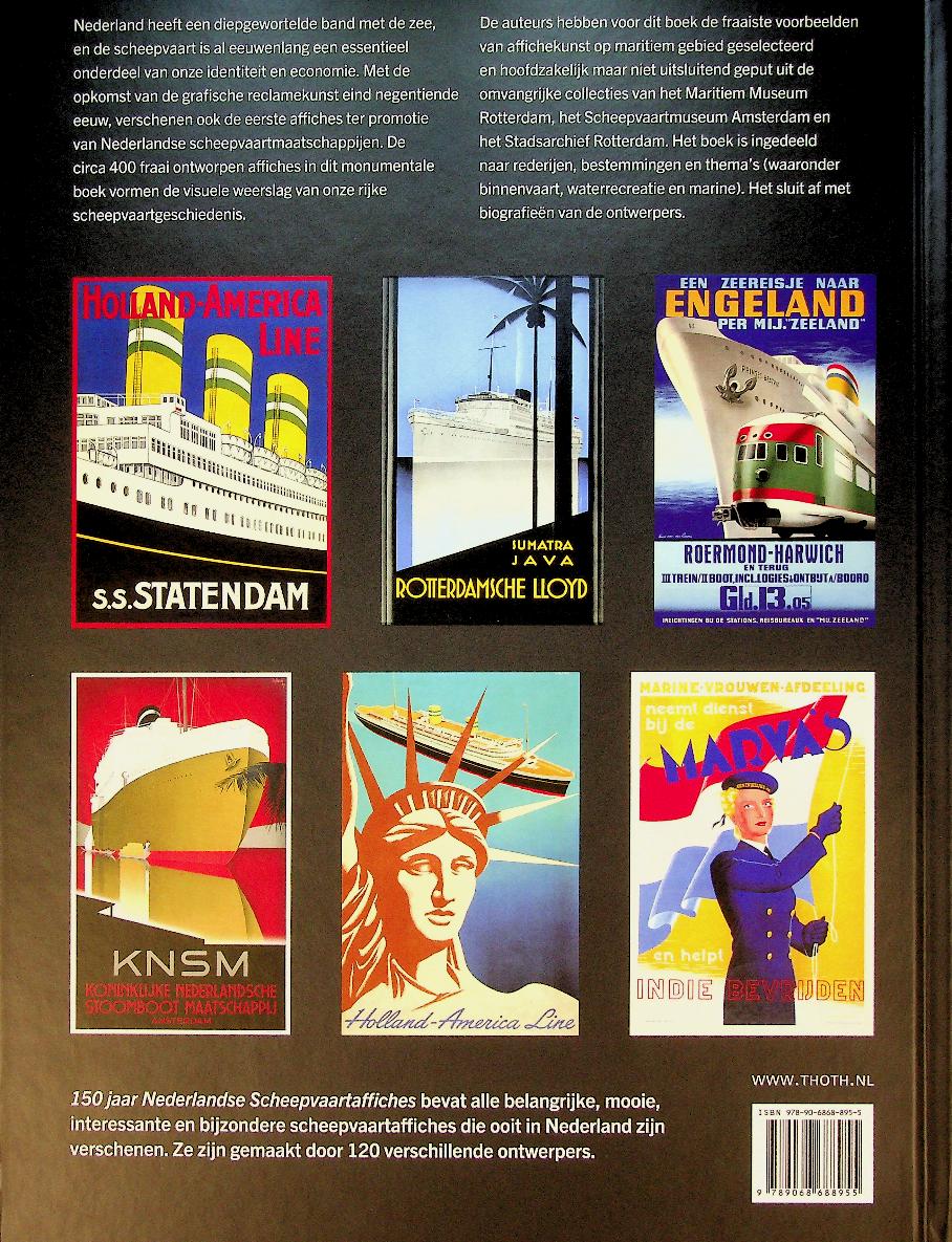 Verschoor, Vincent e.a.: Thoth Bussum, hardcover, 302 blz., rijk geïllustreerd. 150 jaar Nederlandse Scheepvaartaffiches toont aan de hand van circa 400 affiches hoe de Nederlandse scheepvaart zich in anderhalve eeuw ontwikkelde, als zowel economisch als cultureel fenomeen. De affiches zijn thematisch gerangschikt naar rederijen, bestemmingen en onderwerpen, met biografieën van ruim 125 ontwerpers en achtergrondinformatie bij de afbeeldingen. ISBN 9789068688955 Nieuw (Because of weight, no sending outside Europe, or some additional costs)