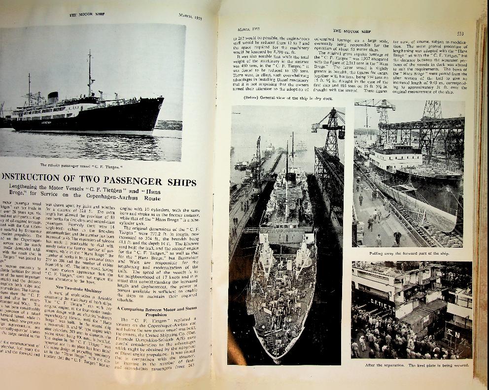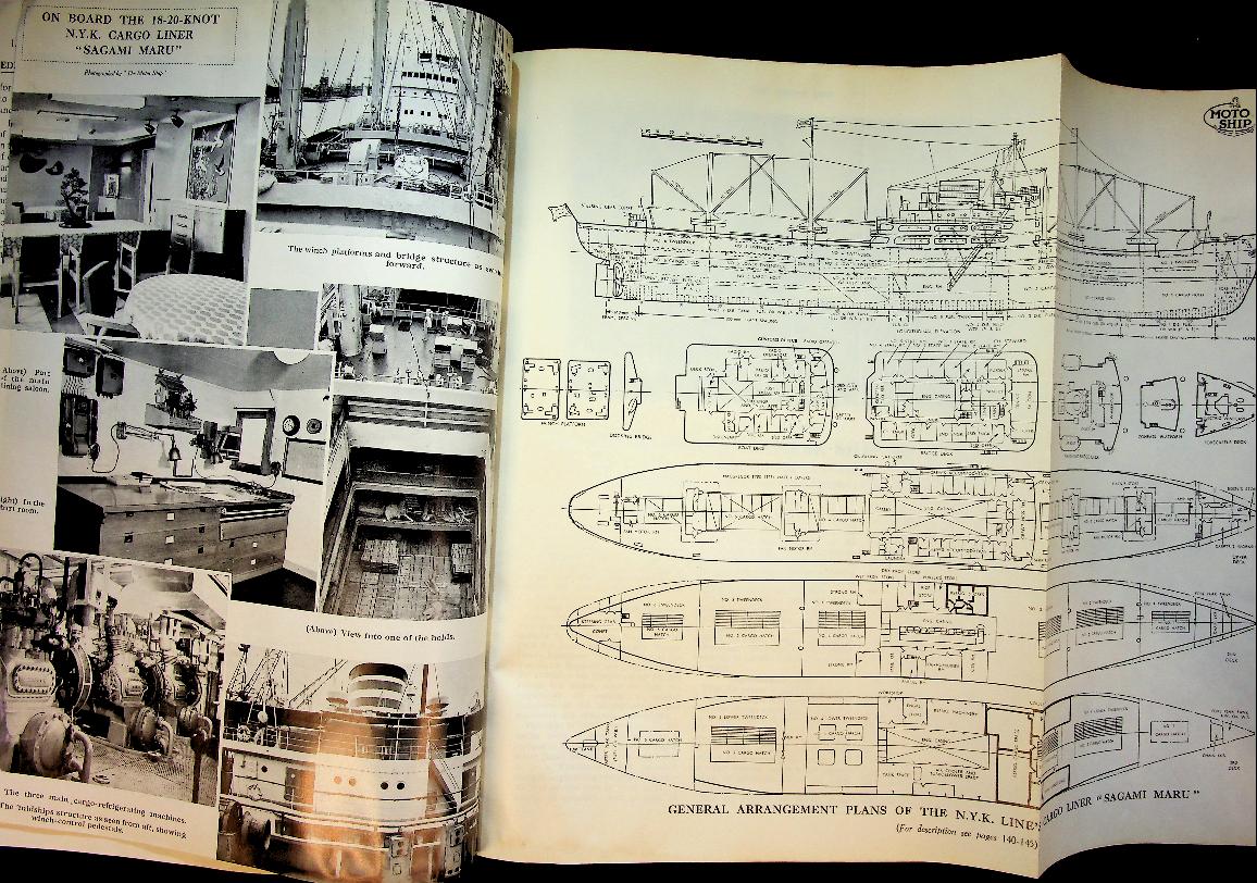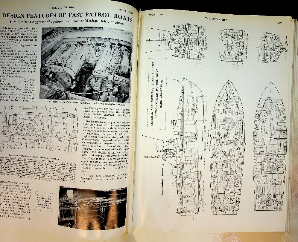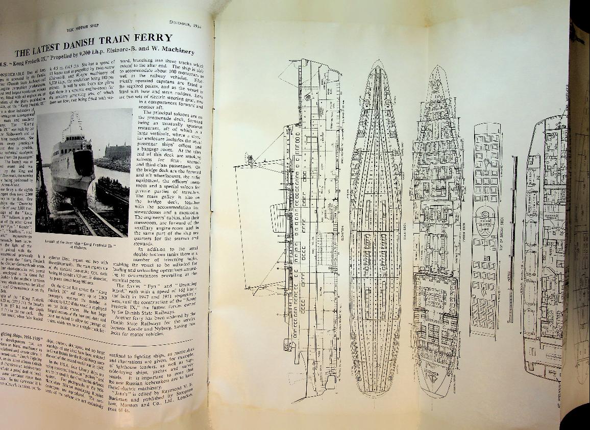 The Motor Ship: 1954-1955, hardcover binding, about 800 pages, illustrated with photos and folding-out design drawings. In good condition (because of weight no sending outside Europe, or actual costs)
