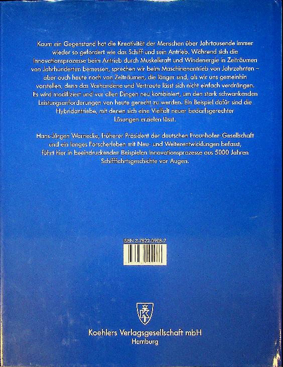 Warnecke, H.J.: 2005 Koehler Verlag Hamburg, Hardcover mit Schutzumschlag 462 Seiten, illustriert. Hans-Jürgen Warneckes „Schiffsantriebe; 5000 Jahre Innovation“ zeichnet die Geschichte des Schiffsantriebs von antiken Rudern und Segeln über Dampf-, Diesel- und Gasturbinenantriebe bis hin zur Kernenergie nach und erklärt, wie technische Durchbrüche die Seefahrt und den Handel über fünftausend Jahre hinweg revolutionierten. Das reich illustrierte, 462 Seiten umfassende Werk bietet einen detaillierten historisch-technischen Überblick über die Antriebsmethoden von Schiffen und die Bedeutung der einzelnen Antriebswechsel für Marine und Handelsschifffahrt. ISBN 9783782209083 In sehr gutem Zustand. Deutsche Sprache