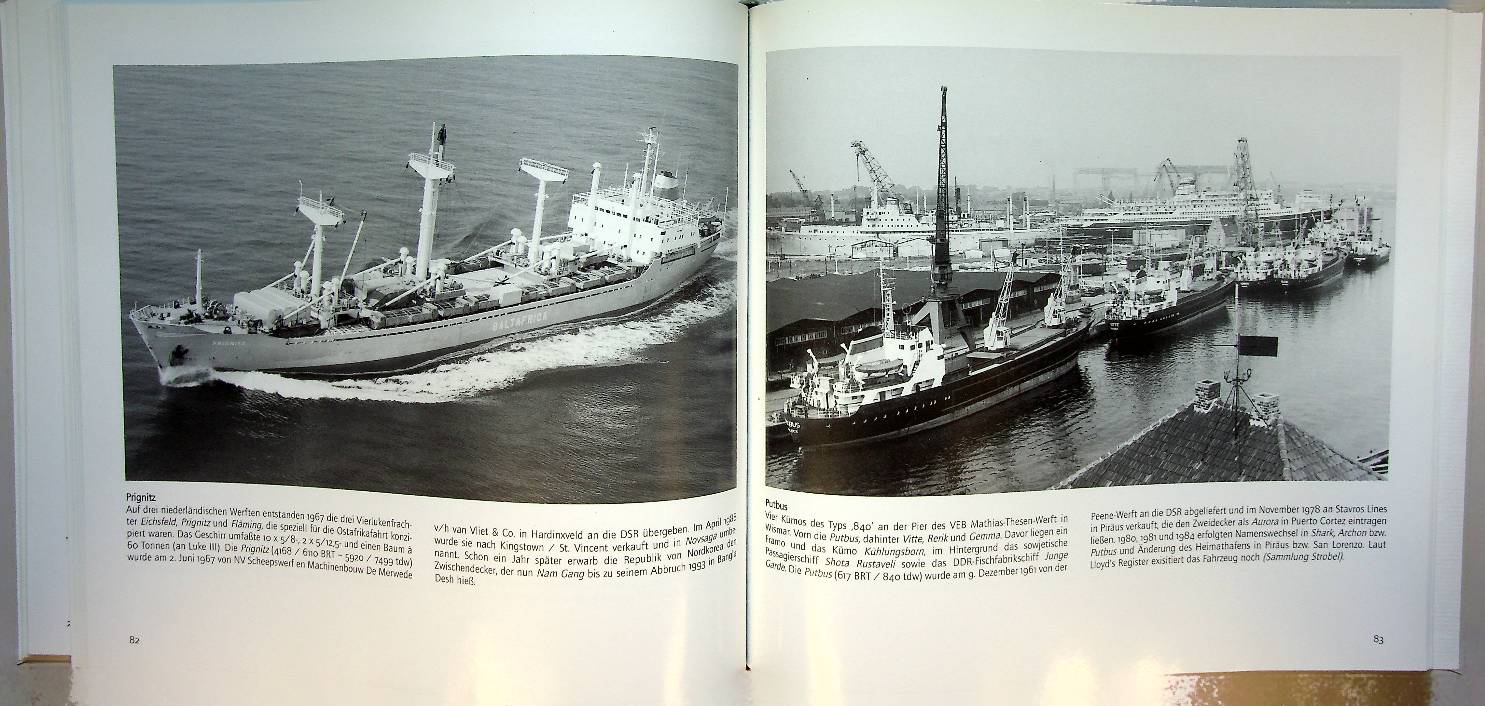 Detlefsen, G.U.: Bad Segeberg 2005, hardcover 120 pages. Schiffe der DSR is a photo-heavy pictorial documenting ships of the Deutsche Seereederei (DSR) in Rostock, featuring many previously unpublished images. It pairs the photographs with descriptive captions/text identifying and describing the vessels.. ISBN 9783897572942 / 389757294x In very good condition. German language