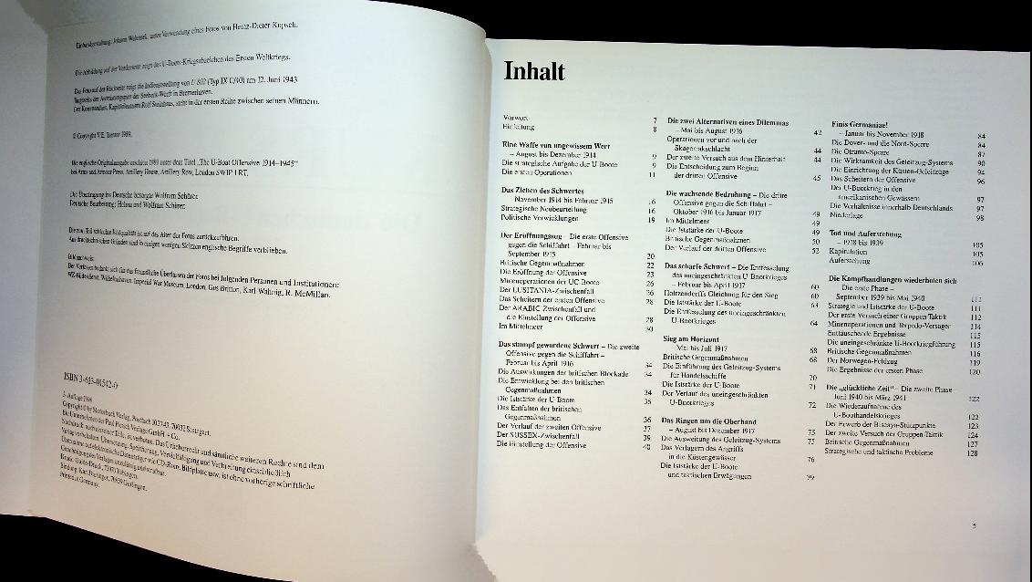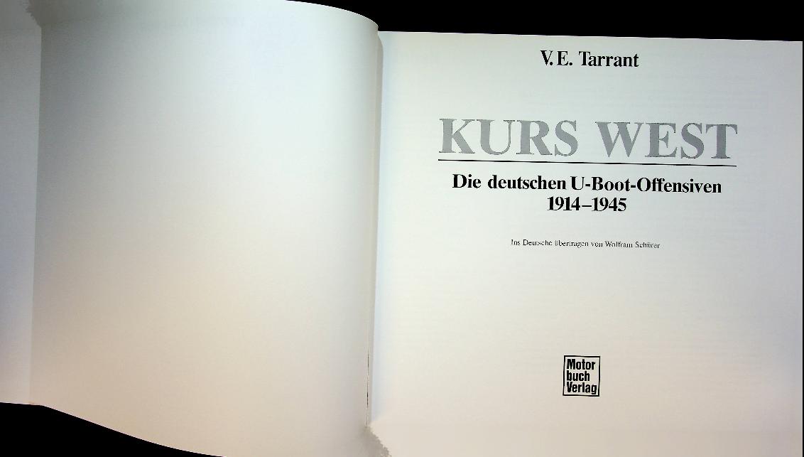 Tarrant, V.E.: 1998 Motorbuch Verlag Stuttgart, hardcover, 273 pages, illustrated, with photos and maps. Kurs West is V. E. Tarrant’s German-language history of the German U-boat offensives from 1914 to 1945, synthesizing operational narratives, commander perspectives, and campaign results to trace how submarines shaped both world wars and the Battle of the Atlantic. The book combines chronology with analysis of technology, tactics, and countermeasures, explaining why early successes gave way to mounting losses as Allied intelligence, convoy systems, and air power tightened the noose. ISBN 9783613015425 In very good condition
