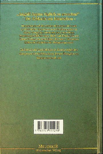 Neugebauer, M: 2009 Melchior Wolfenbüttel, hardcover, 155 pages, illustrated. A detailed account of Japan's declaration of war on Germany in 1914 and the subsequent siege and capture of the German-held territory of Kiautschou (Tsingtao) during World War I. The book meticulously describes the military operations, challenges faced, and the ultimate surrender of the German garrison, offering an in-depth perspective of this lesser-known conflict. ISBN 9783941555280 In very good condition. German language
