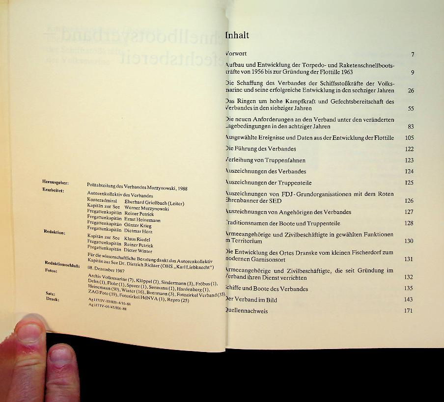 Collective: Volksmarine 1987 East Germany, softcover, 171 pages, illustrated. Schnellbootsverband Gefechtsbereit describes the organisation, operations and day‑to‑day readiness of the 6th Flotilla of the Volksmarine, the East German Navy’s fast‑attack craft formation operating missile and torpedo boats in the Baltic Sea during the Cold War. It focuses on crew training, tactics, combat readiness exercises and cooperation with Soviet and Polish navies, giving an insider’s view of how the GDR’s fast‑attack forces prepared for potential engagements in the Baltic theatre. In very good condition. German language