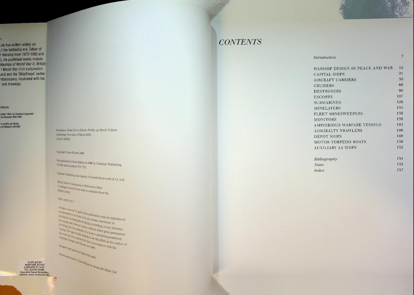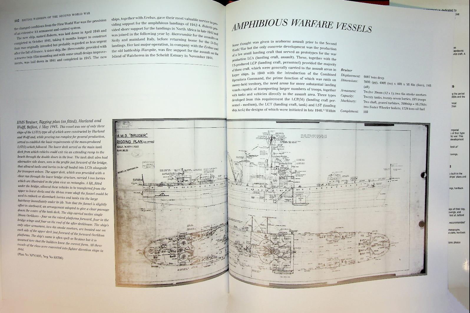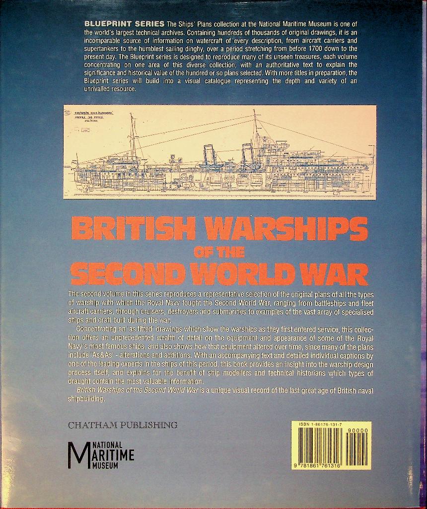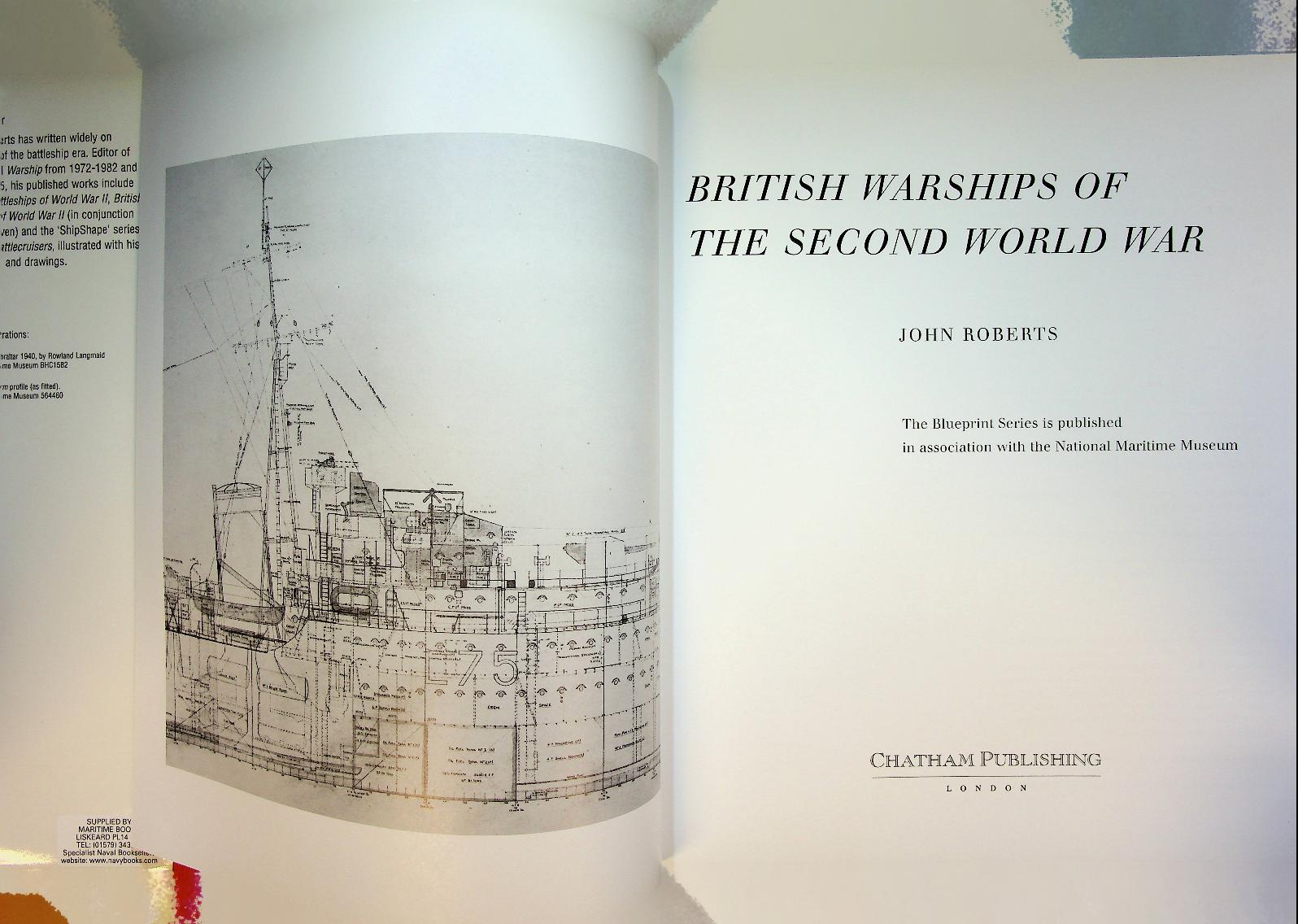 Roberts, John: 2000 UK, hardcover with dust jacket, 160 pages, illustrated. British Warships of the Second World War. Detailed in the Original Builders’ Plans presents a rich selection of official “as-fitted” shipyard drawings of the Royal Navy’s main wartime ship types, from battleships and fleet carriers to destroyers, submarines, and specialist vessels, highlighting their configuration as they entered service and how their appearance evolved through refits and modifications. With expert commentary supporting the colour plans, the book offers valuable technical insight for naval historians and modelmakers into the design process, structural details, and equipment fit of some of Britain’s most significant World War II warships. ISBN 9781473890688 In very good condition