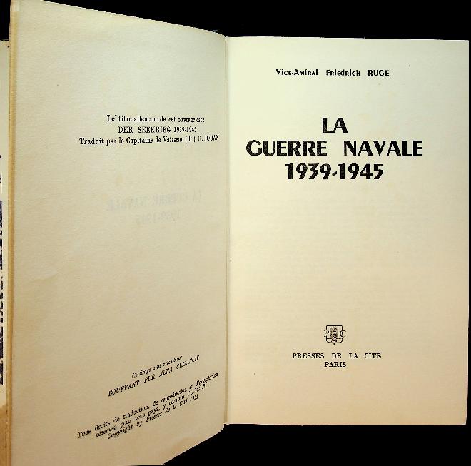 Ruge, Friedrich: 1955 Paris, hardcover, 349 pages, qwith photos and maps. La Guerre Navale 1939-1945 by Friedrich Ruge provides a detailed account of naval warfare during the Second World War, focusing mainly on the strategies, operations, and outcomes for the German Navy and its adversaries. The book analyzes both the strategic context and individual actions at sea, offering insights into how maritime power shaped the broader conflict. French Language