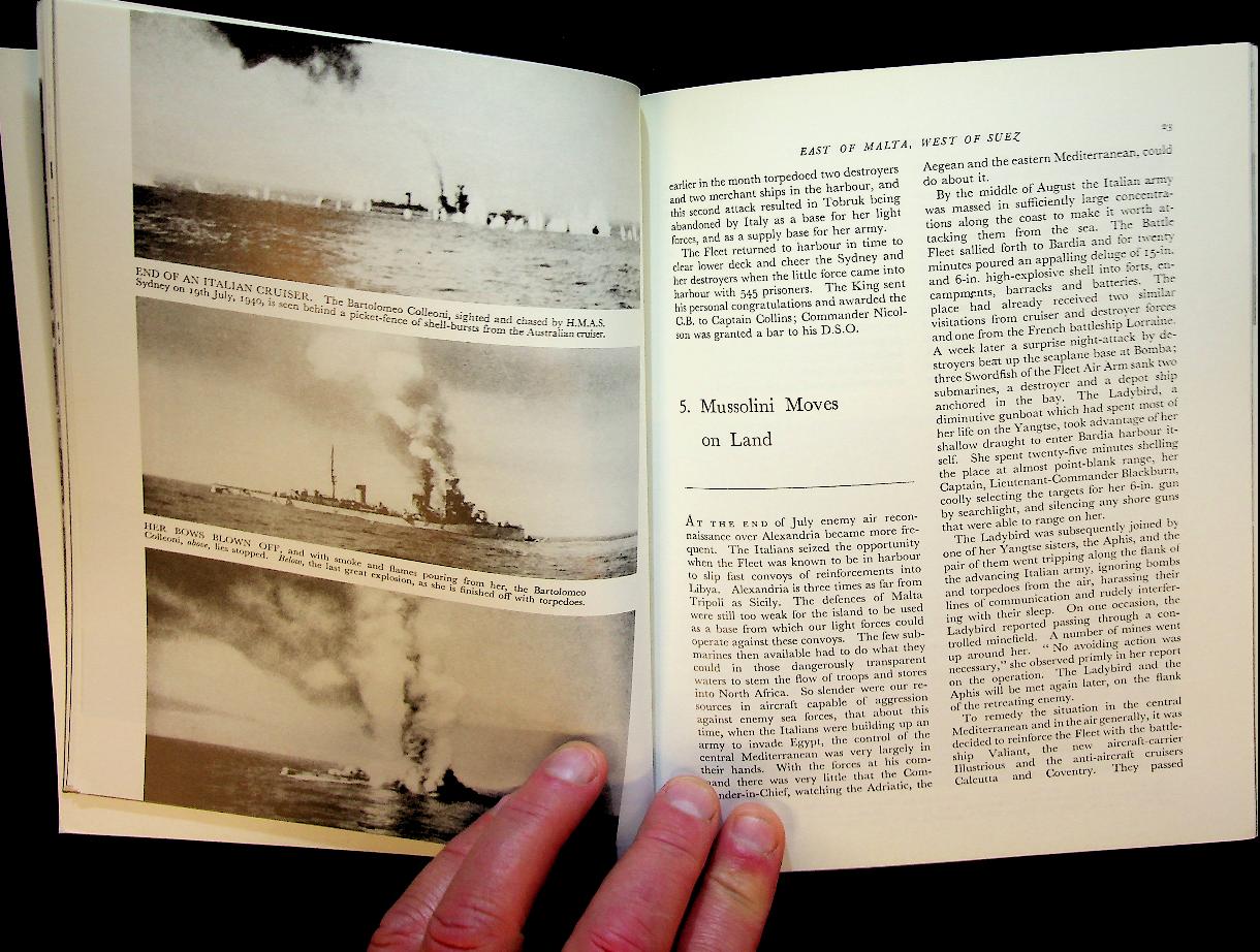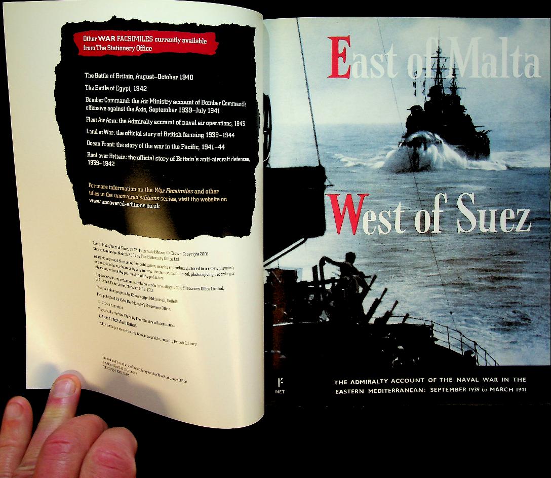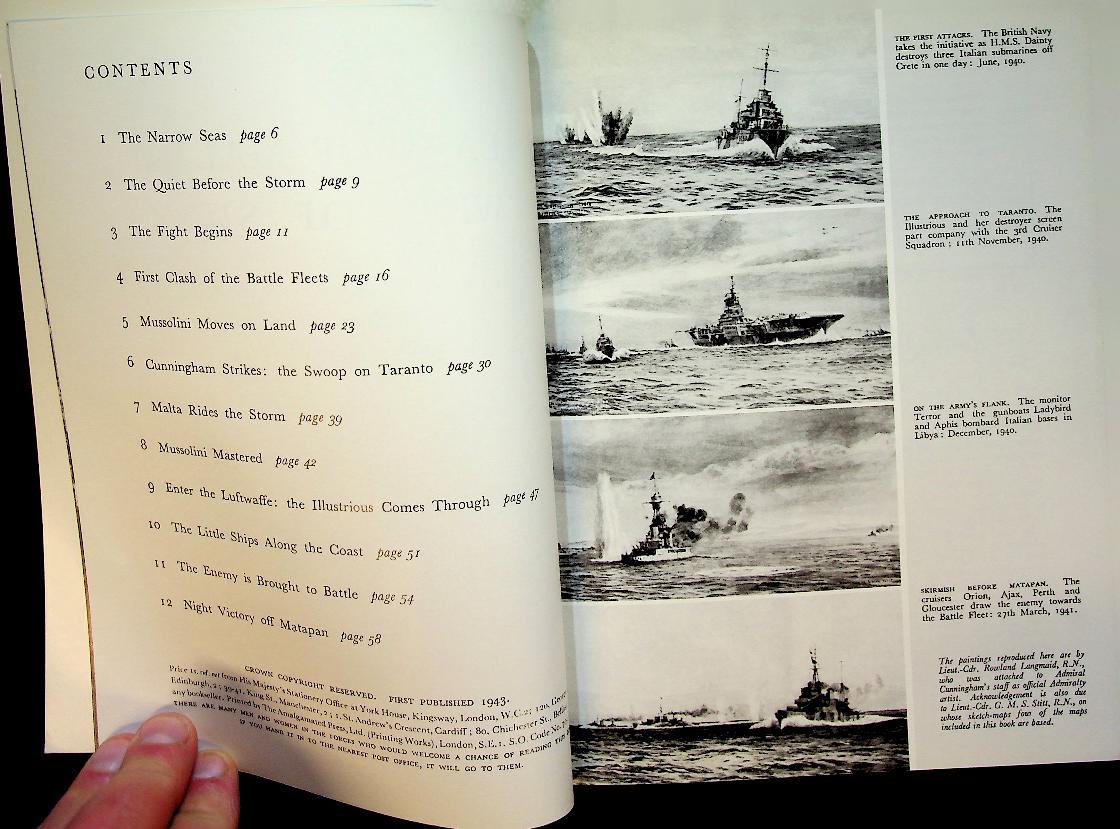 Collective: 2001 Stationary Office UK, softcover, 66 pages, illustrated. The Book describes how the Royal Navy fought to secure vital sea routes against Italian and German forces in the early years of the Second World War. It focuses on convoy battles, fleet actions, and the strategic struggle for control of the Eastern Mediterranean, highlighting both major successes and heavy losses. ISBN 9780117025387 In very good condition