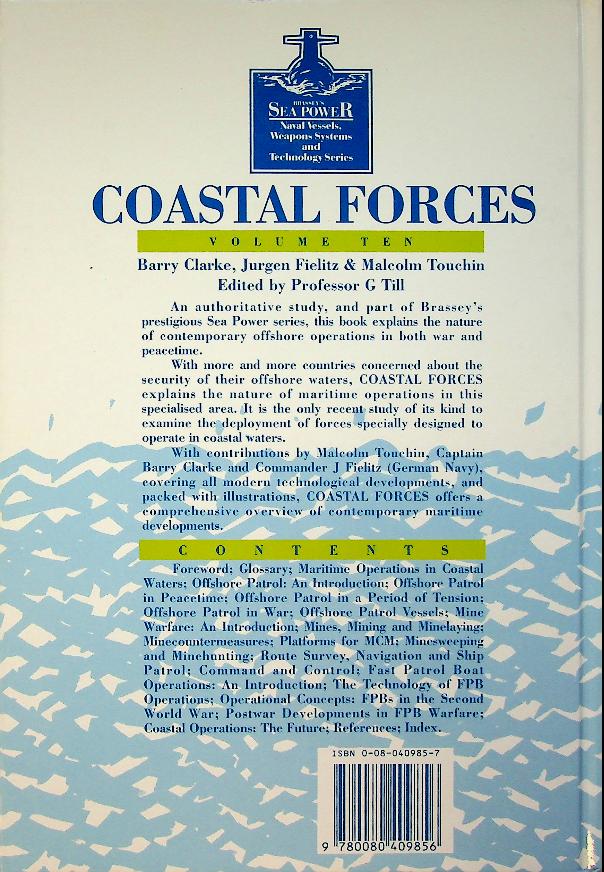Clarke, Barry a.o.: 1994 UK, hardcover, 162 pages, illustrated. Coastal Forces describes the development and operational use of small, fast warships such as motor torpedo boats, motor gun boats and other patrol craft employed in coastal waters by the Royal Navy and its allies. Illustrated overview of design, armament and service of coastal forces in the twentieth century. ISBN 9780080409856 In very good condition