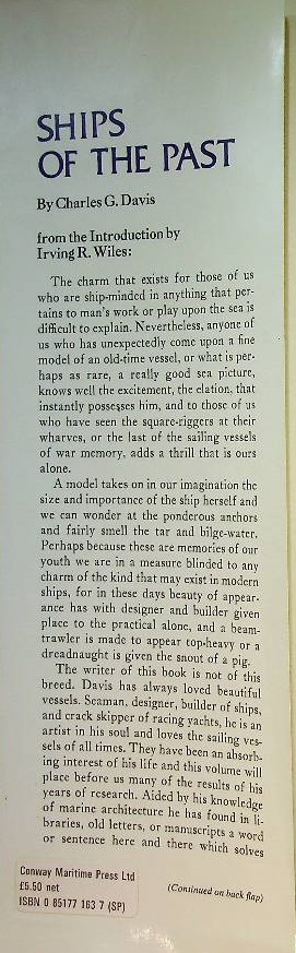 Davis, C.G: 1979 Bonanza Books USA, hardcover with dustjacket. History and design of the Fishing Schooner, The Baltimore Clipper, The Packet Ship Isaac Webb, The Frigate Raleigh and Congress. The book Ships of the Past by Charles G. Davis is a richly illustrated study of traditional American ship design, tracing the evolution of sailing vessels from early Block Island boats and pinkys to the famous Baltimore clippers and fishing schooners. Combining technical detail with historical insight, Davis presents both the artistry and craftsmanship of shipbuilding, offering an enduring tribute to America’s maritime heritage. ISBN 9780851771632 In very good condition