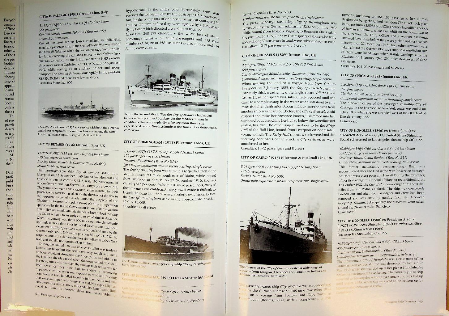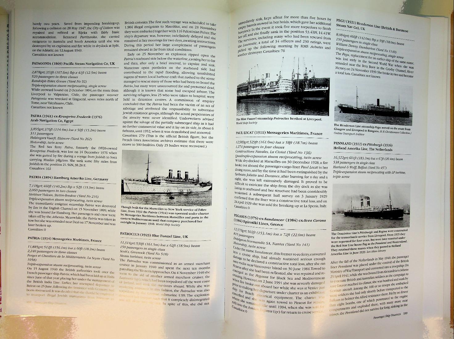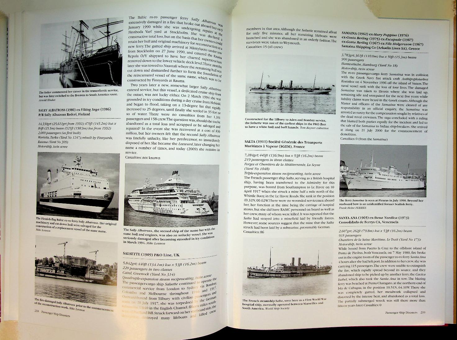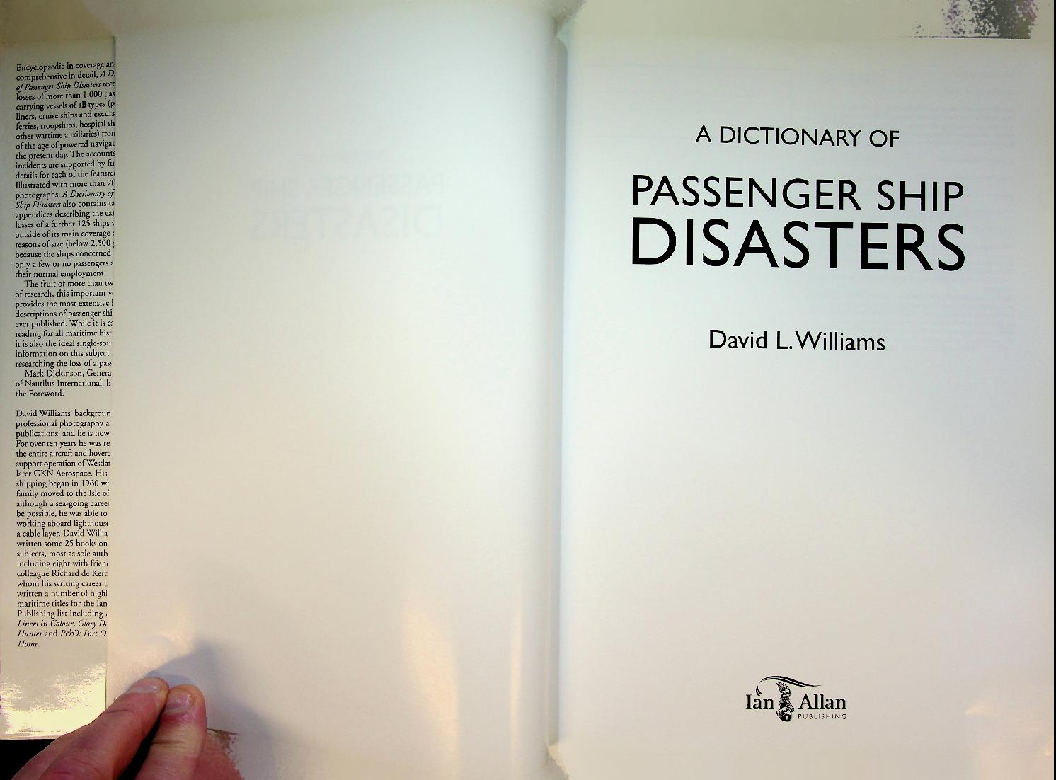 Williams, David L: 2009 UK, hardcover with dust jacket, 288 pages, with many photos. A Dictionary of Passenger Ship Disasters by David L. Williams gives concise accounts of major passenger ship losses worldwide over roughly the last century, focusing on vessels above about 500 gross tons and the circumstances of their loss. The book summarises for each disaster the ship’s basic particulars, route, cause and course of the accident, and key facts about casualties and aftermath, creating a quick reference work on serious passenger shipping accidents. ISBN 9781844250466 In very good condition