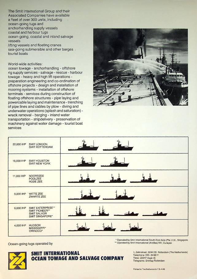 Smit International: 1980 Rotterdam, softcover 4 pages, with photos and specifications. In very good condition