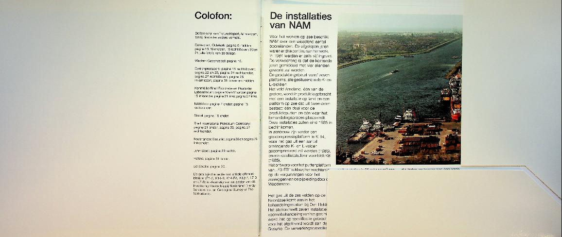 NAM: 1984, softcover 32 pages, with photos. About Oildrilling and the Oildrillinstallations of the NAM in the Northsea. Dutch language. In good condition