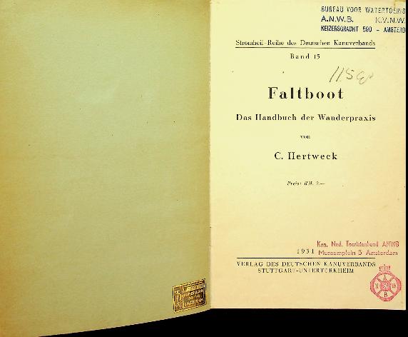 Hertweek, C: 1931 Verlag des kanuverbands, softcover, 80 pages, illustrated. Waterwanderführer, Faltboot (1931) by Hertweck is a practical early-20th-century guide for folding-boat paddlers, outlining river routes, access points, and on-water logistics for touring German-speaking waterways in the interwar era. It combines concise route descriptions with safety and equipment notes tailored to Klepper-style folding kayaks, serving travelers who needed a portable craft and dependable, region-by-region waterway information. With some tape. In good condition. German language.