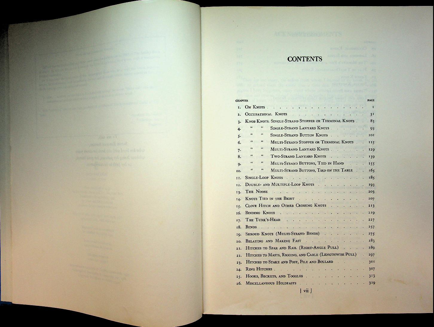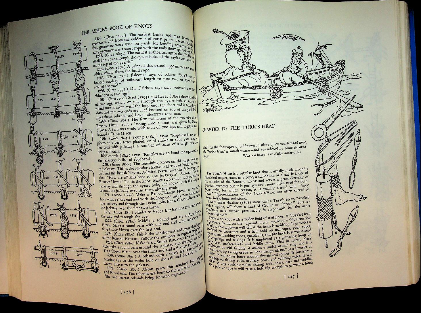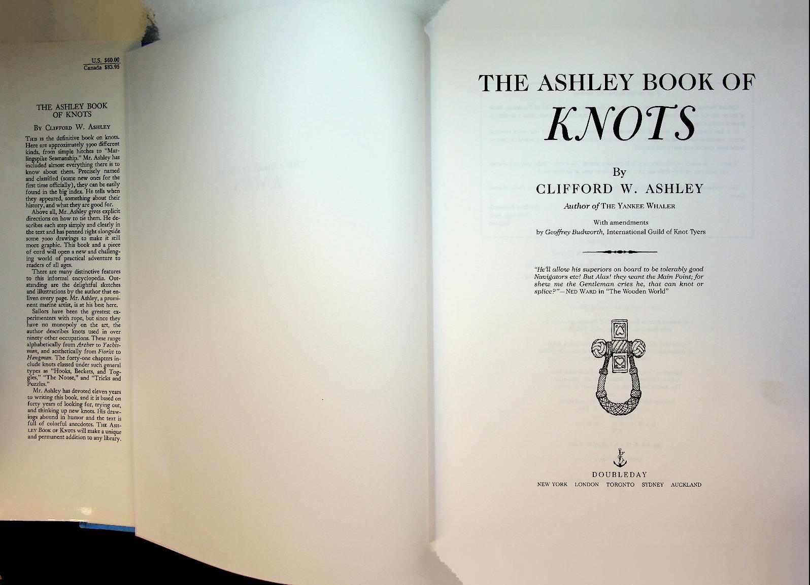 Clifford W. Ashley: 1944 Doubleday New York, hardcover without dustjacket 620 pages. The Ashley Book of Knots is a comprehensive encyclopedia of over 3,800 knots, describing their appearance, uses, history, and methods of tying with around 7,000 clear illustrations. It is widely regarded as the definitive reference work on knot-tying, reflecting Clifford W. Ashley’s decades of practical and historical research ISBN 9780385040259 / 057109659x In very good condition
