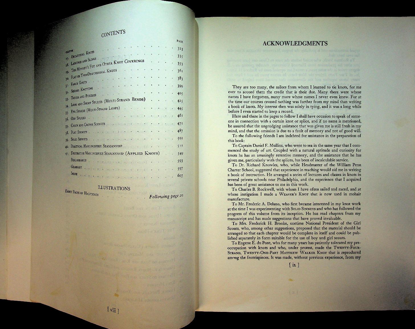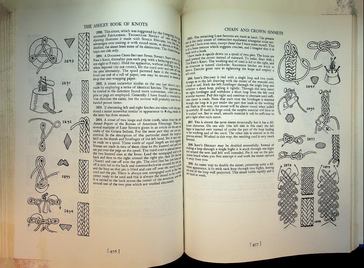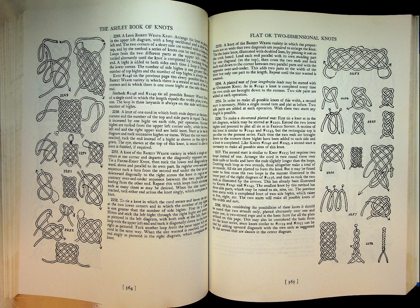Clifford W. Ashley: 1944 Doubleday New York, hardcover without dustjacket 620 pages. The Ashley Book of Knots is a comprehensive encyclopedia of over 3,800 knots, describing their appearance, uses, history, and methods of tying with around 7,000 clear illustrations. It is widely regarded as the definitive reference work on knot-tying, reflecting Clifford W. Ashley’s decades of practical and historical research ISBN 9780385040259 / 057109659x In very good condition
