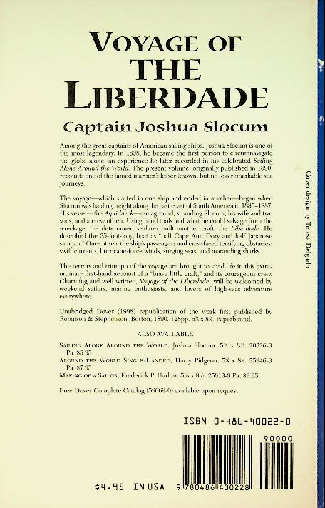 Slocum, J.: 1998 UK, softcover, 118 pages. Voyage of the Liberdade recounts how Joshua Slocum, after his ship the Aquidneck was wrecked off the coast of Brazil, built a 35-foot boat named Liberdade with his family and sailed over 5,500 miles through storms and hardships from Brazil to the United States. This memoir captures both the dangers and triumphs of their remarkable journey, highlighting Slocum’s ingenuity and the adventurous spirit of 19th-century seafaring ISBN 9780486400228 In very good condition
