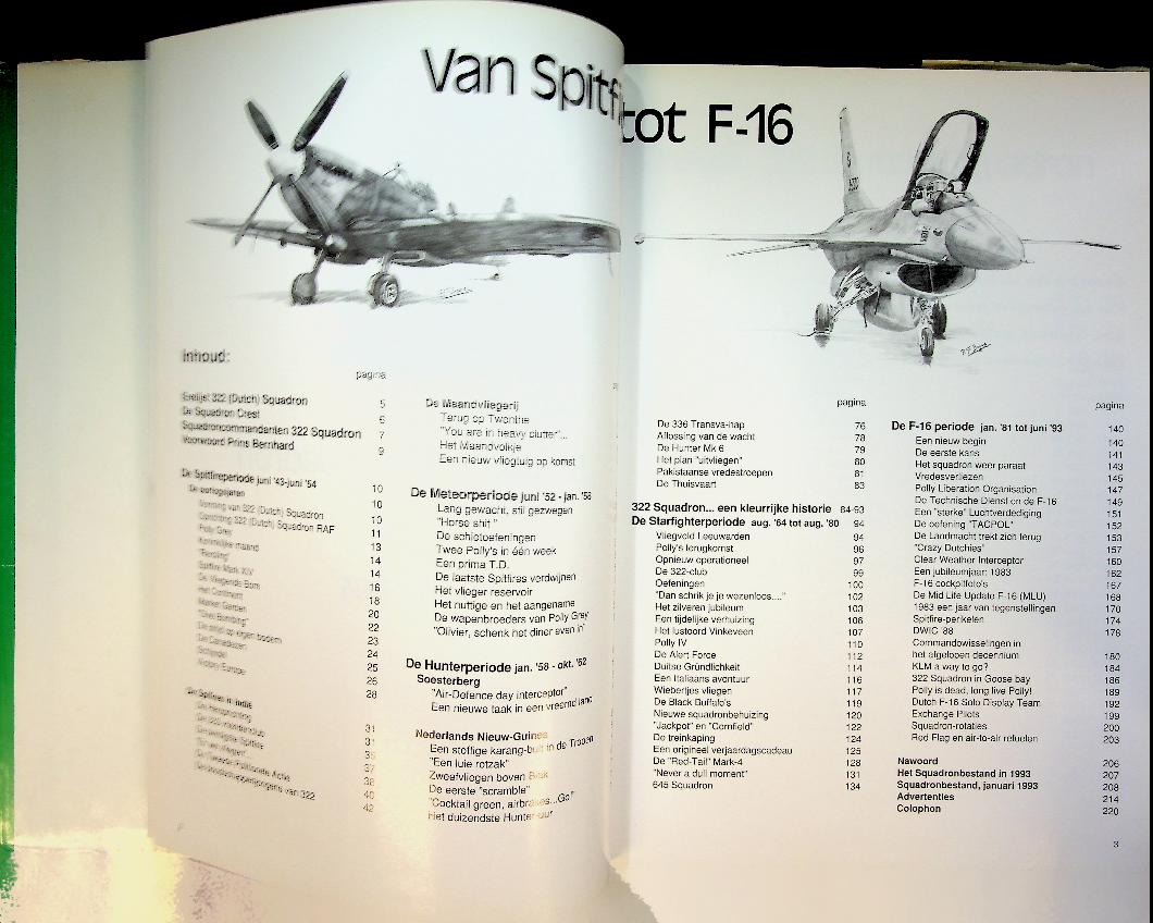 Appeldorn, P. ea.: 1993, hardcover met papieromslag, 220 blz., geïllustreerd. Het boek “50 jaar 322 Squadron (1943–1993)” schetst in woord en beeld de ontwikkeling van het oudste operationele jachteskader van de Koninklijke Luchtmacht, vanaf de oprichting als 322 (Dutch) Squadron bij de RAF in 1943 tot en met de KLu-periode, met veel aandacht voor operaties, materieel en vliegers. Bijzonder gewicht ligt op de Tweede Wereldoorlogsfase, waaronder de rol in de bestrijding van V‑1 vliegende bommen, en op de continuïteit en tradities die het squadron door vijf decennia heen hebben gevormd. In goede staat