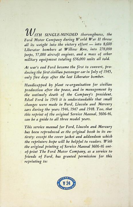 Ford, Lincoln & Mercury Service Manual 1946 Thru 1948