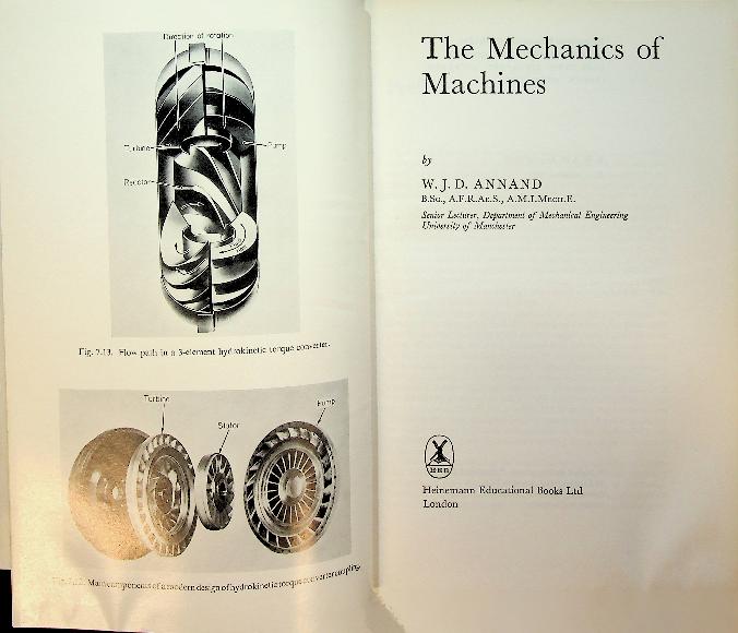 Annand, W.J.D.: 1966 UK, hardcover, 353 pages, illustrated. The book “The Mechanics of Machines” by W. J. D. Annand presents a rigorous introduction to machine mechanics, covering kinematics, dynamics, energy methods, and the analysis of common machine elements such as clutches, belts, and gears, with an emphasis on applying Newtonian principles to real mechanical systems. It integrates inertia, balancing, and vibrations (free and forced) in single- and multi-degree-of-freedom systems, using worked examples to link theory with engineering practice. In very good condition