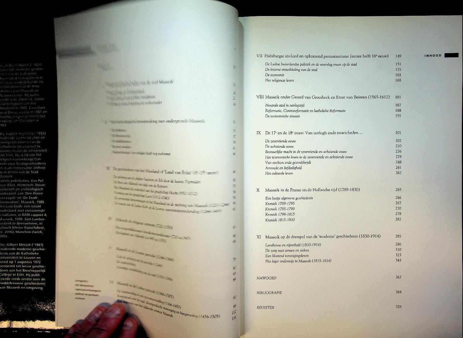 Diverse auteurs: 1994 Standaard Uitgeverij Antwerpen, hardcover met papieromslag 397 blz., geïllustreerd. Geschiedenis van Maaseik. Maaseik, ontstaan en groei van een grensstad beschrijft de ontwikkeling van Maaseik van prehistorische bewoning tot moderne grensstad, met aandacht voor politieke geschiedenis, economie, religie en stedelijk leven. Tal van illustraties, kaarten en archiefstukken tonen hoe de stad ruimtelijk, sociaal en cultureel is gegroeid en welke gebeurtenissen en personen daarin een sleutelrol speelden. ISBN 9789002197673 / 9002197675 In zeer goede staat