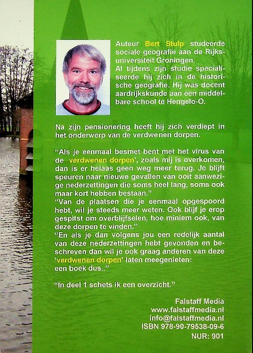 Stulp, Bert: 2008 Alkmaar, softcover, 188 blz., geïllustreerd. Deel 1, Een overzicht, is een inleidend deel waarin Stulp het verschijnsel van verdwenen dorpen in heel Nederland beschrijft: wat hij onder een verdwenen dorp verstaat, welke oorzaken er spelen en hoe je ze opspoort. Hij bespreekt een selectie van honderden opgespoorde nederzettingen, met korte beschrijvingen, kaarten en foto’s, en markeert zo de thema’s en casussen die in de latere regionale delen verder worden uitgediept. ISBN 9789079538027 In zeer goede staat
