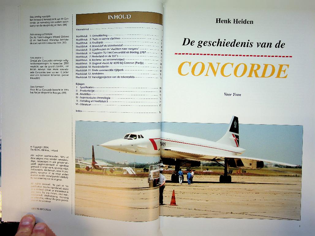 Heiden, Henk: 2004 De Alk, hardcover 175 blz., geïllustreerd. Het boek De geschiedenis van de Concorde van Henk Heiden beschrijft het vliegtuig als zowel letterlijk een hoogvlieger (het vloog op 18 kilometer hoogte met meer dan 2000 km/u) als figuurlijk, vanwege de enorme ontwikkelingskosten (16 miljard dollar) en het symbolische prestige van dit Brits-Franse project. Heiden behandelt de complete ontwikkeling van de Concorde (1962–2003), besteedt aandacht aan luchtvaartgeschiedenis, de ramp in 2000, en vergelijkt het toestel met Russische en Amerikaanse tegenhangers. ISBN 9789060132531 In zeer goede staat