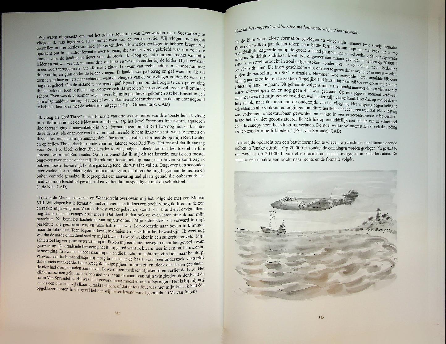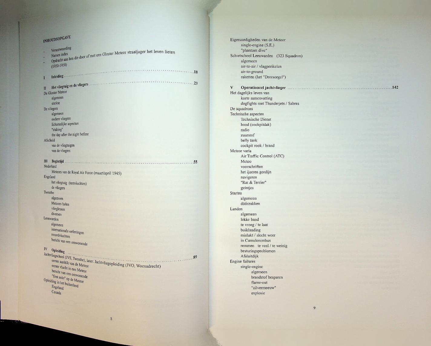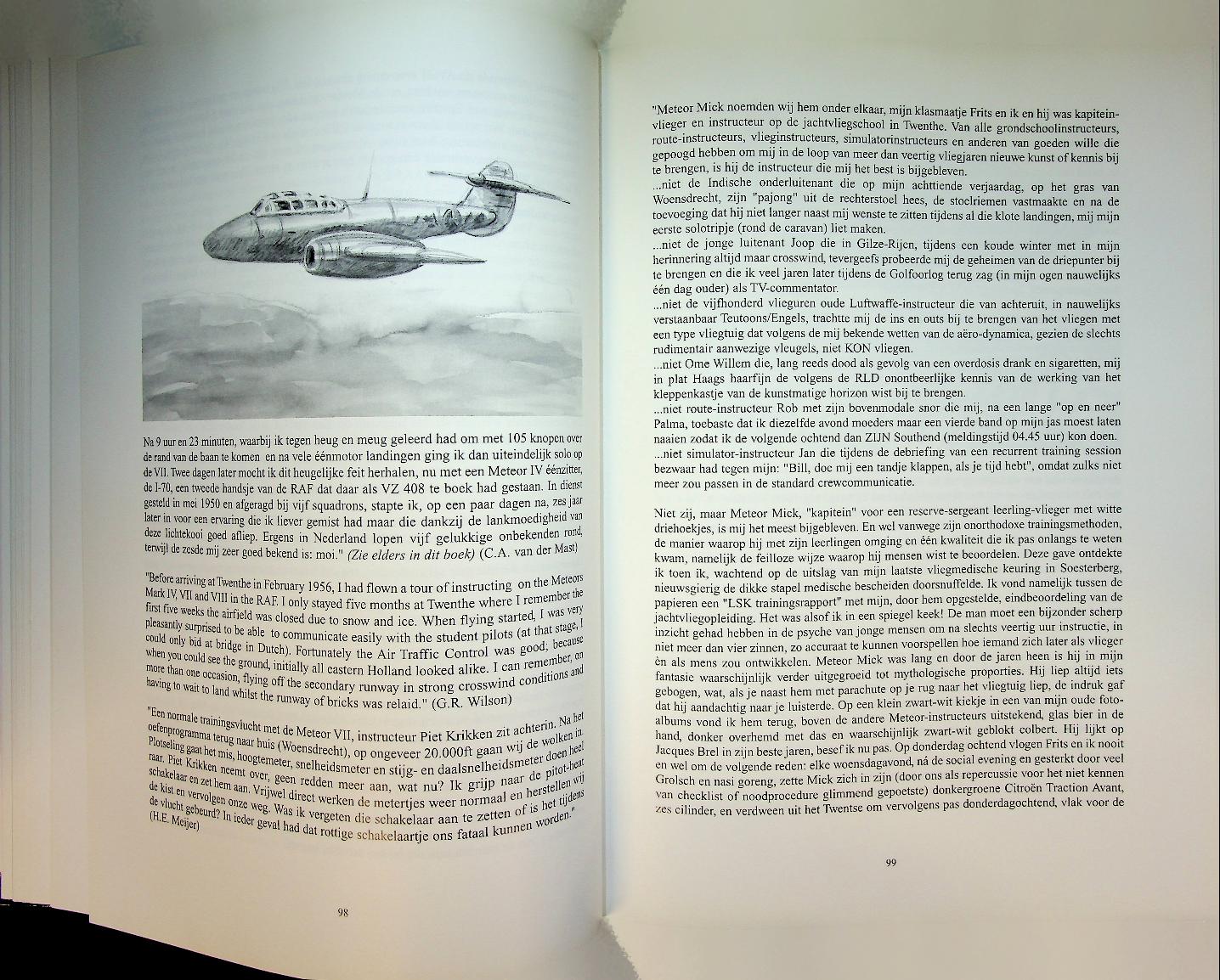 Wijk, A. van en H. Haring: 1999 Bonneville, hardcover, 415 blz., geïllustreerd. Herinneringsboek over de Gloster Meteor straaljagers bij de Nederlandse luchtmacht in de periode 1948–1959, met persoonlijke verhalen van vliegers en personeel. Het combineert historische achtergrond, operationele beschrijvingen en anekdotes om de introductie van het straaljagertijdperk in Nederland levendig te documenteren. 9789073304512 In zeer goede staat