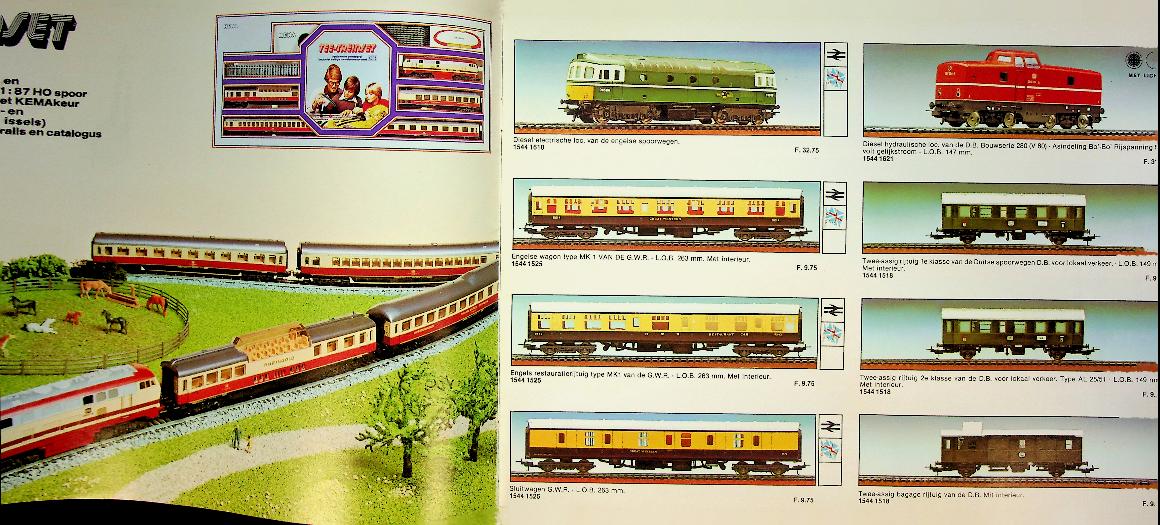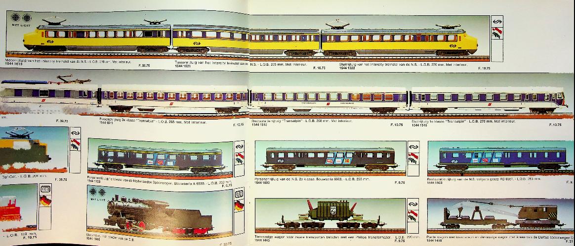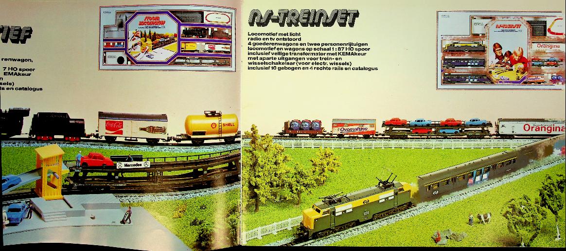 Hema: 1979, softcover 23 blz.. Tussen circa 1962 en 1983 gaf HEMA elk jaar een kleurrijke catalogus uit vol Lima-modeltreinen. HO-Spoor. De eerste edities verschenen onder de merknaam Lucky Life, maar werden later simpelweg als HEMA-treinen gepresenteerd. In de Katalogus treinen, wagons, rails en accessoires. In zeer goede staat