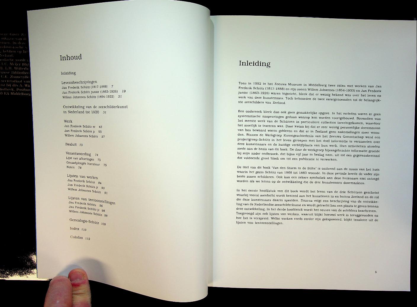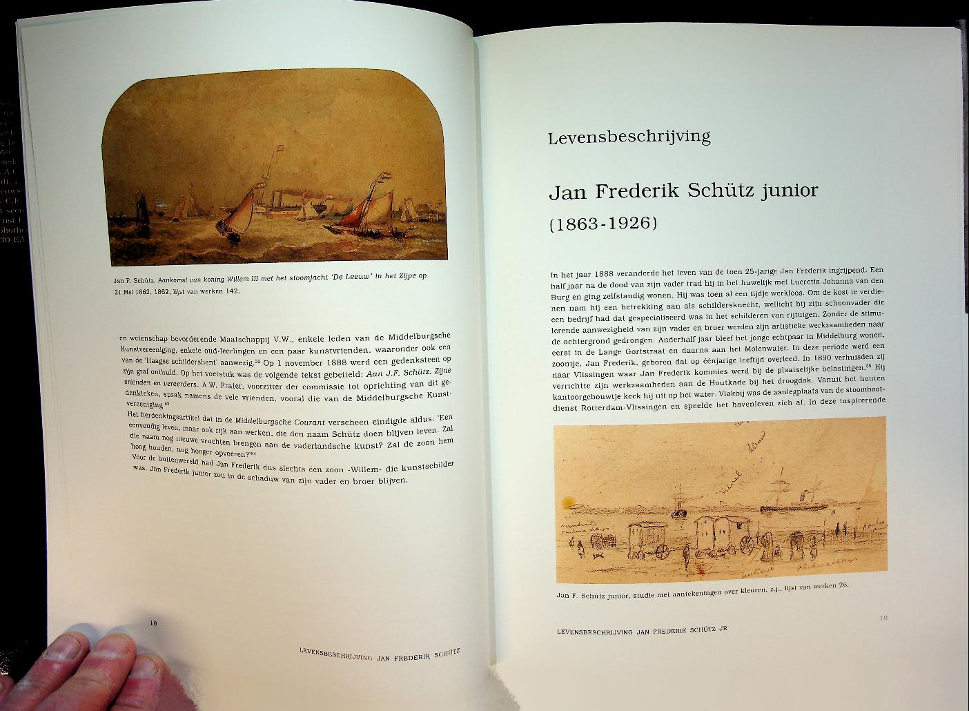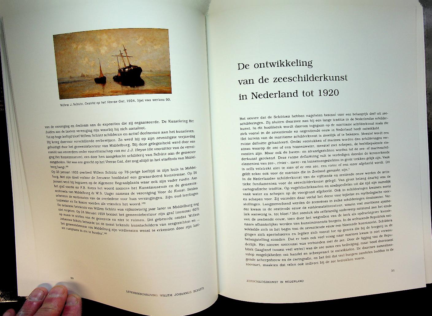 Platier-van Engeland, Mary: Hardcover met papieromslag, 111 blz., met vele afbeeldingen in kleur van de kustwerken. Het boek "Van den Storm in de Stilte" van Mary Platier-van Engeland biedt een diepgaande kijk op de Zeeuwse schildersfamilie Schütz (1817-1933). De kern van de schilderkunst van de familie Schütz is sterk maritiem. Ze schilderen zeilschepen en scheepstypen (zoals hoogaarzen, maar ook een bark) op kalm water en op zee, vaak gesitueerd rond de Zeeuwse wateren (o.a. de rede/monding bij Vlissingen en de Westerschelde). Daarnaast komen contrasterende weers- en zeecondities expliciet terug als onderwerp, van “windstil” met slappe zeilen en spiegelingen tot “zwaar weer” (stormachtige zeegezichten). In zulke voorstellingen spelen ook nautische handelingen/taferelen mee, zoals schepen die op de rede liggen en (mogelijk) goederenoverslag, slepen of loodsen, scènes die volgens de bron geliefd waren bij Zeeuwse verzamelaars. ISBN 9789074517072 Nieuw