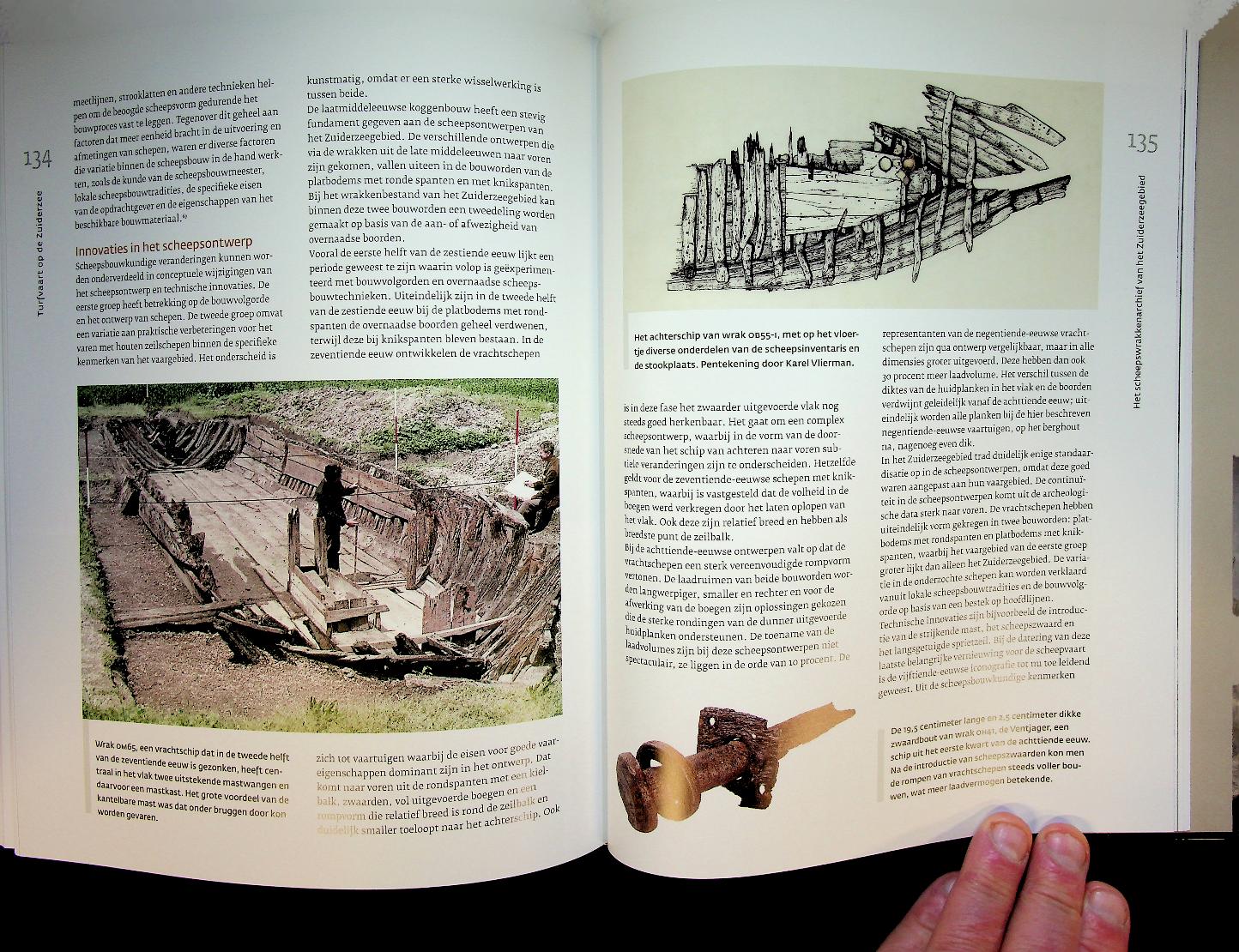 Waldus, Wouter: Matrijs, hardcover, 176 blz., geïllustreerd. Turfvaart op de Zuiderzee van Wouter Waldus laat aan de hand van scheepswrakken in het voormalige Zuiderzeegebied zien hoe de turfvaart tussen 1550 en 1700 het dagelijks leven op zee en aan wal vormde en hoe turfschepen als drijvende tijdcapsules fungeren. Het boek toont tegelijkertijd de cruciale rol van deze brandstofvaart in de economische opkomst van Holland, waar een niet aflatende vraag naar turf leidde tot intensief transport over de Zuiderzee, met alle gevaren van wind en water van dien. ISBN 9789053456033 Nieuw!