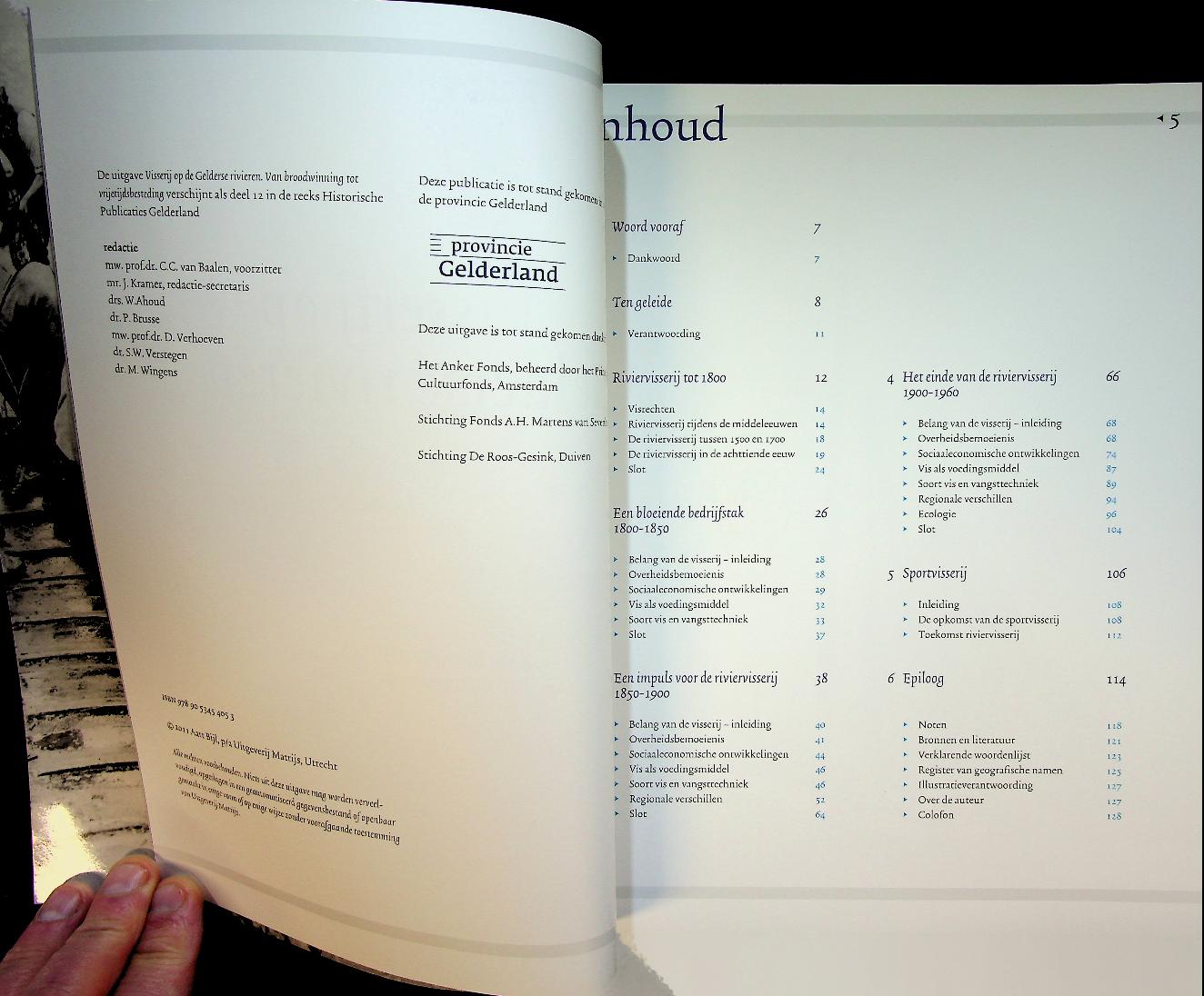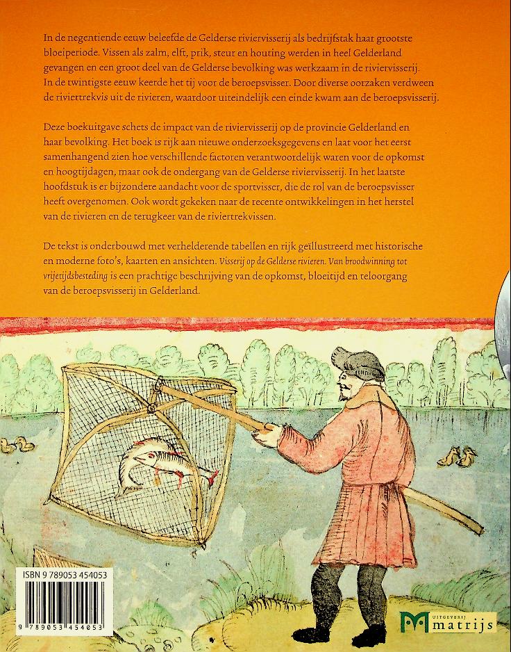 Bijl, Aart: Matrijs, softcover, 127 blz., geïllustreerd. Visserij op de Gelderse rivieren beschrijft de opkomst, bloeitijd en ondergang van de beroepsriviervisserij in Gelderland, met nadruk op de periode 1850-1900 en de overgang van broodwinning naar vrijetijdsbesteding. Het boek is gebaseerd op jarenlang historisch onderzoek en laat zien hoe economische, technische en maatschappelijke ontwikkelingen het vissersbestaan ingrijpend veranderden. ISBN 9789053454053 Nieuw!