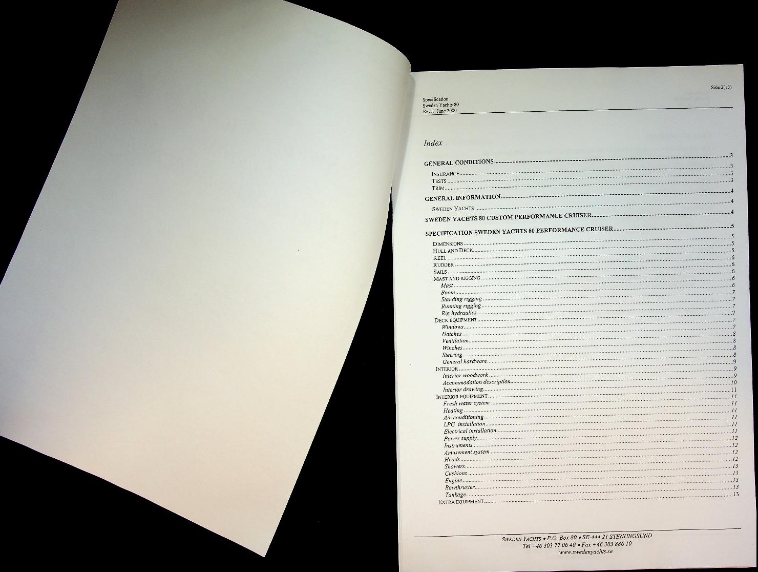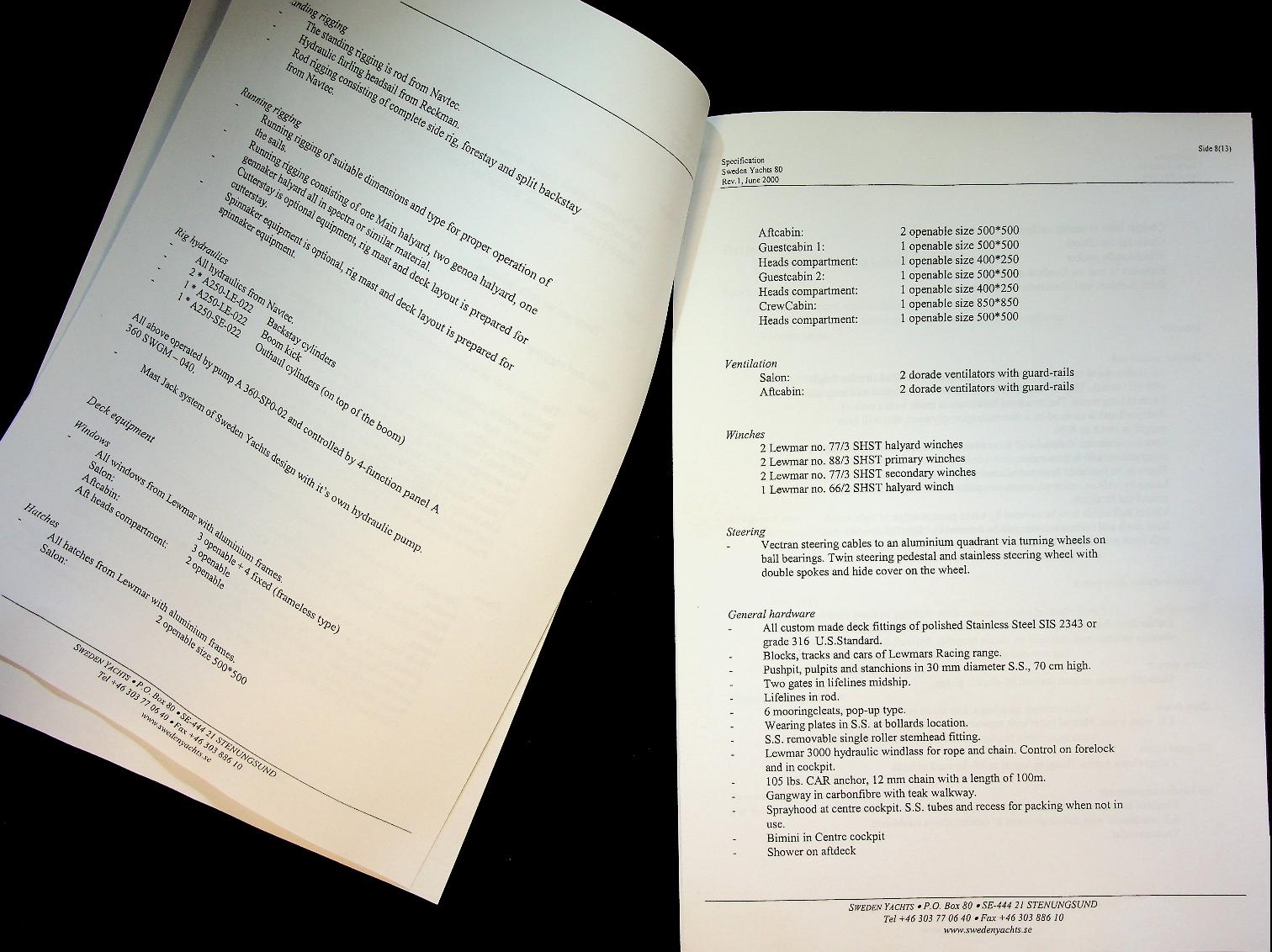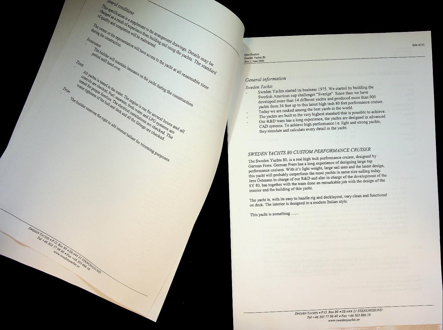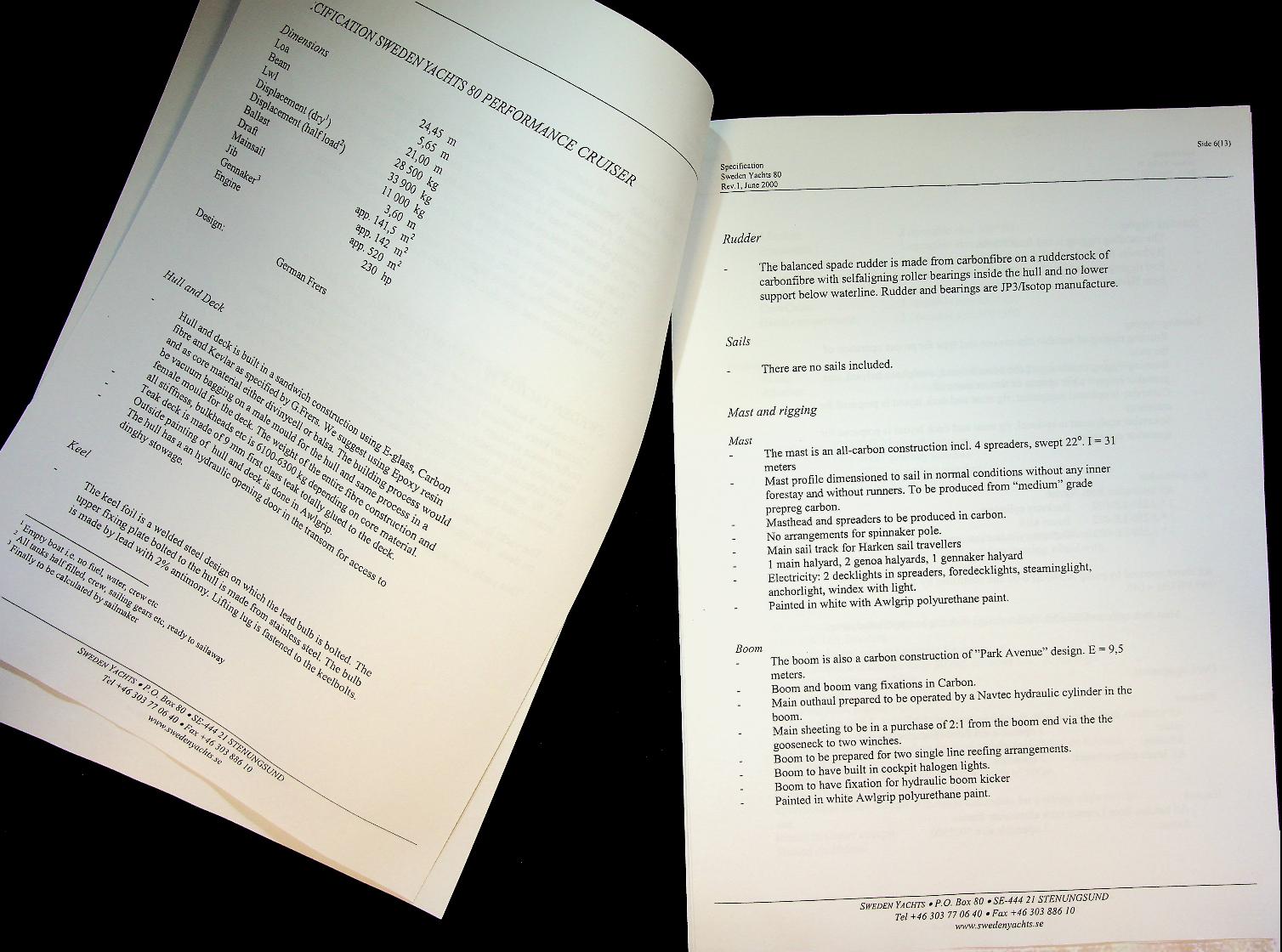Sweden Yachts: 2000 Sweden, softcover, 13 pages, with all the specifications and options. In very good condition