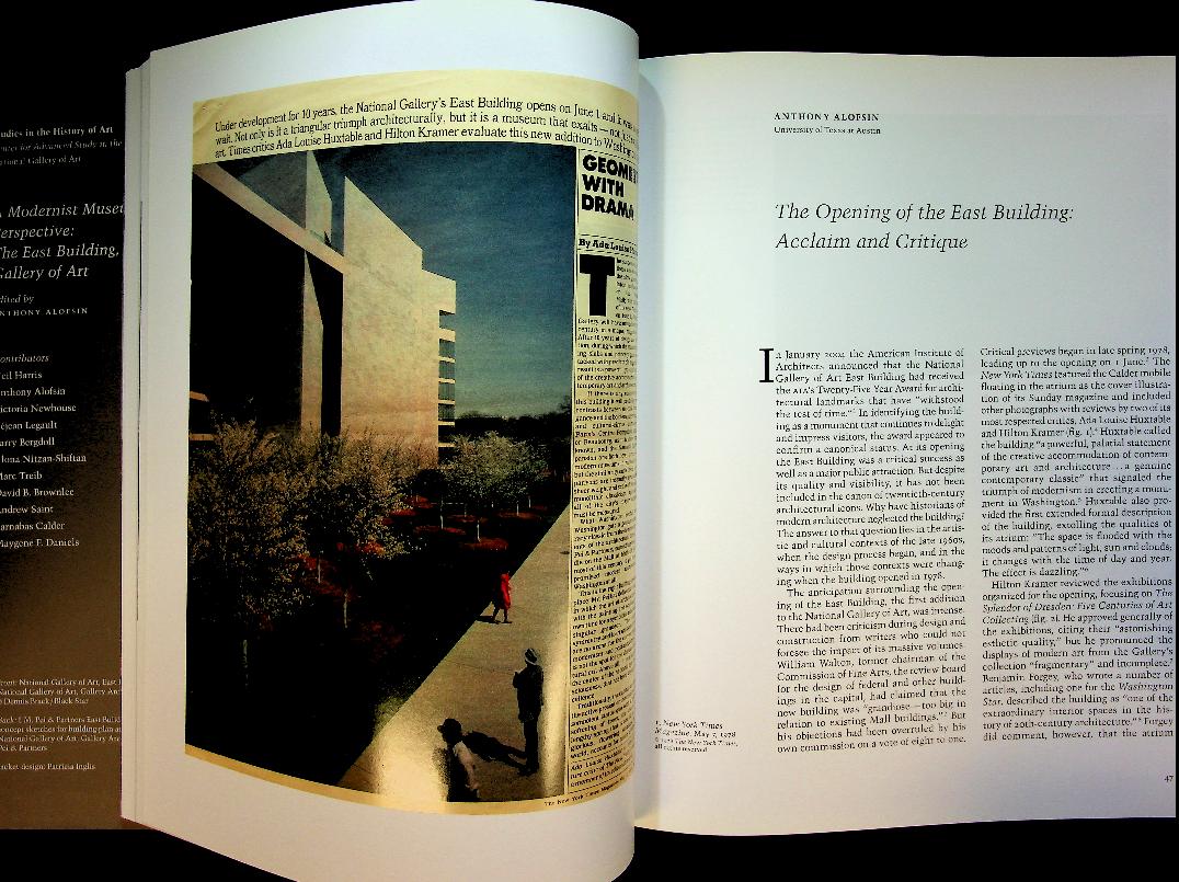 Alofsin, Anthony: 2009 USA, hardcover with dust jacket, illustrated. A Modernist Museum in Perspective, edited by Anthony Alofsin, offers the first critical examination of I. M. Pei's East Building at the National Gallery of Art, exploring the evolution of its design, its reception, and its influence on 20th-century museum architecture through essays by distinguished scholars. The book situates the building in its urban context, compares it to other modernist museums, and illustrates its development with drawings, models, and photographs. ISBN 9780300121599 In very good condition