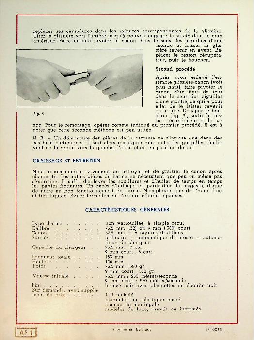 Brochure Pistolet Automatique Browning Model 1910