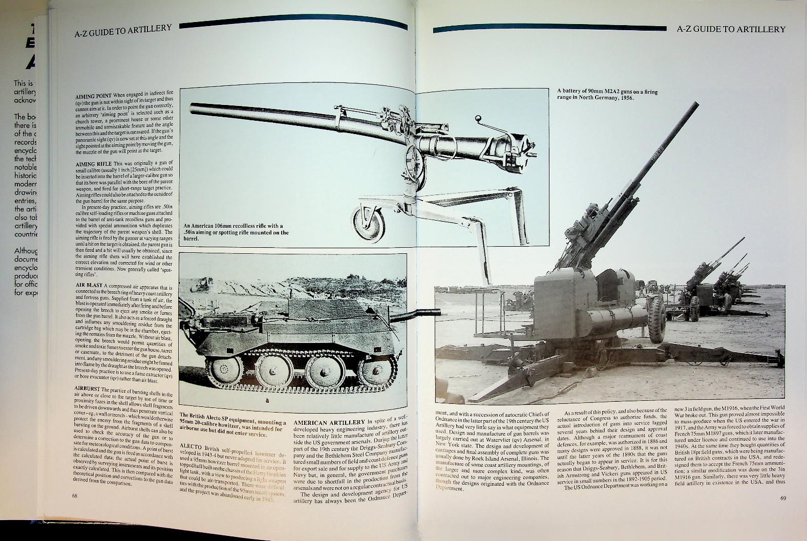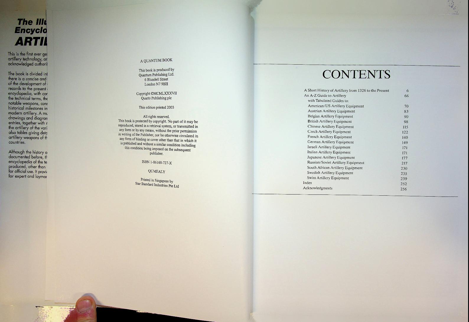 Hogg, I.V.: 2003 Quantum UK, hardcover with dust jacket, 256 pages, illustrated. The Illustrated Encyclopedia of Artillery by Ian V. Hogg is an A–Z, heavily illustrated reference that surveys artillery pieces (and related weapons) across eras, focusing on identification, design features, and key technical/context notes. It’s written as a browsable encyclopedia rather than a narrative history, making it useful for quick look-ups by weapon name or type ISBN 9781853480966 / 1853480967 In very good condition