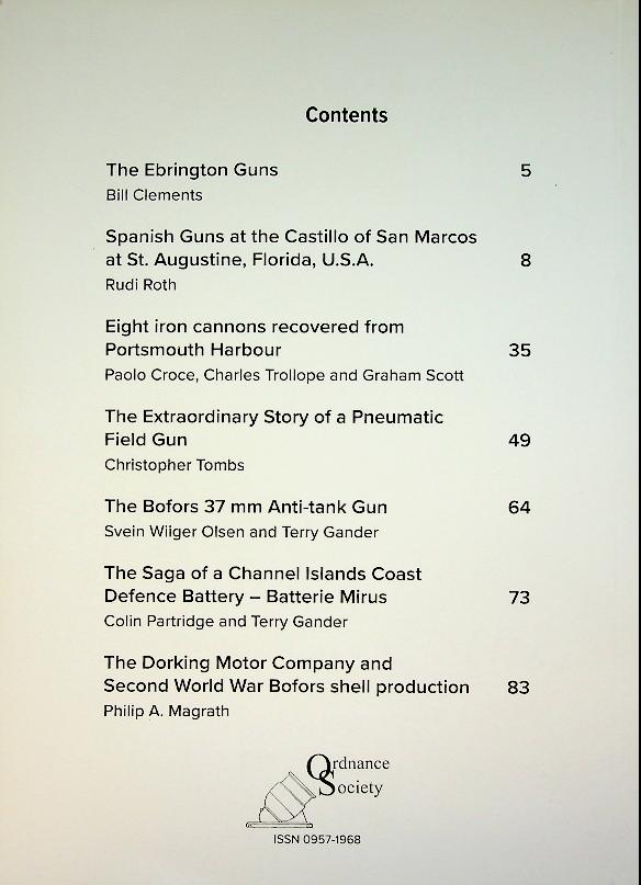 Collective: 2022, softcover, 96 pages, illustrated. Dit nummer bevat artikelen over historische kanonnen en geschut, waaronder de Ebrington Guns, Spaanse kanonnen in St. Augustine (Florida) en acht ijzeren kanonnen uit Portsmouth Harbour. Daarnaast behandelt het experimentele en moderne geschut, zoals een pneumatisch veldkanon, de Bofors 37 mm antitankkanon, de Duitse Batterie Mirus op de Kanaaleilanden en de productie van Bofors-granaten door de Dorking Motor Company in de Tweede Wereldoorlog. ISSN 0957-1968. In very good condition
