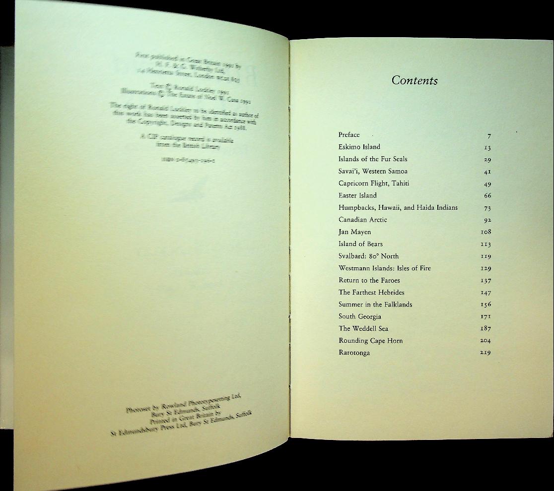 Lockley, Ronald: 1991 London, hardcover with dust jacket, 237 pages, illustrated. A narrative of the author’s journeys to remote bird islands across both hemispheres, describing in rich detail the seabirds’ behaviour, migrations and breeding colonies. The book combines natural history observation with travel writing, reflecting Lockley’s lifelong fascination with isolated islands and the wild bird life they support. ISBN 9780854931965 In very good condition.