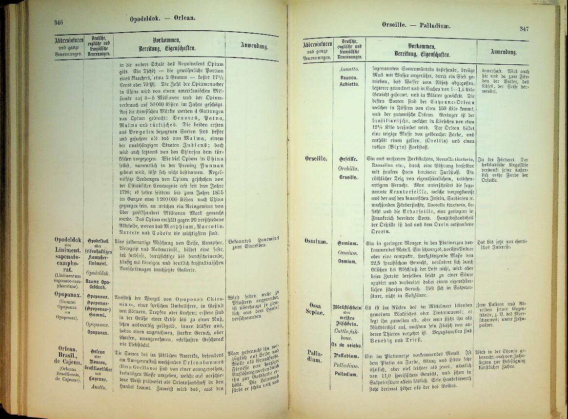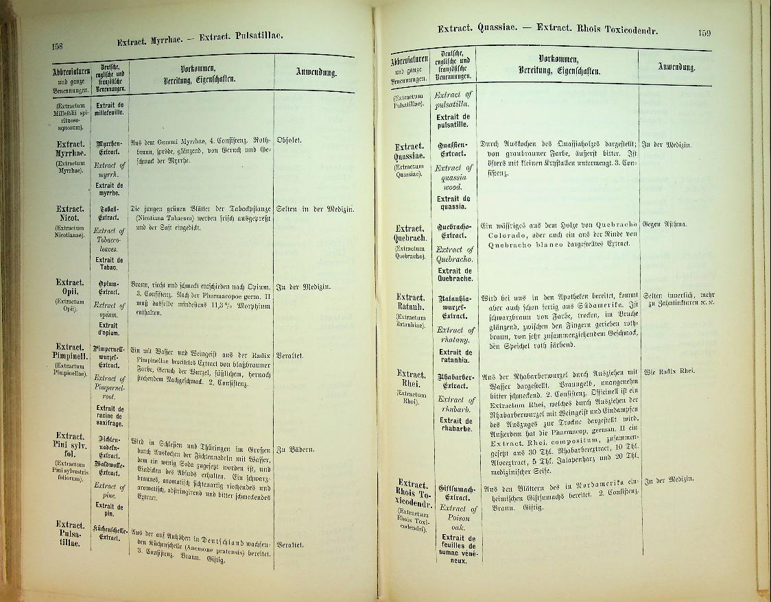 Konig, Johann Karl: 1886 Germany, hardcover, 570 pages. comprehensive reference work for pharmacists, druggists and related trades, explaining the nature, origin and uses of drugs, spices and colorants, arranged under their (mainly) Latin trade names. It provides concise descriptions, storage and authenticity guidelines, typical applications in medicine, veterinary practice and technical fields, and also includes special sections on dyes, household goods and food preparations. Book with the leather on the spine. In good condition. German language