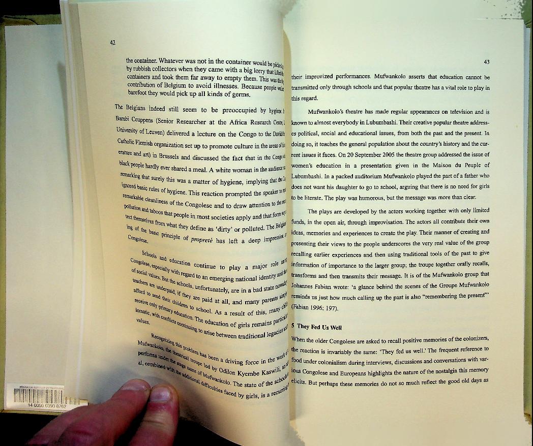 Spaas, L: 2007 New York, hardcover 236 pages, with photos. How Belgium Colonized the Mind of the Congo. Seeking the Memory of an African People by Lieve Spaas explores how Belgian colonial rule shaped Congolese memories, identities and ways of thinking, using interviews, travel narratives and historical material to trace the psychological and cultural imprint of colonization. The book brings together Belgian and Congolese voices to examine representations of the Congo from colonial times to the present, showing how power, violence and racism were internalized, resisted and reimagined in personal recollections and public narratives. ISBN 9780773451674 In very good condition