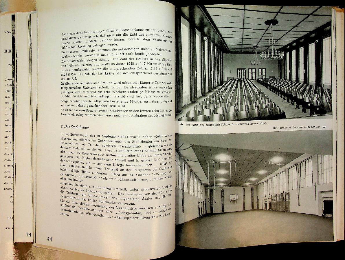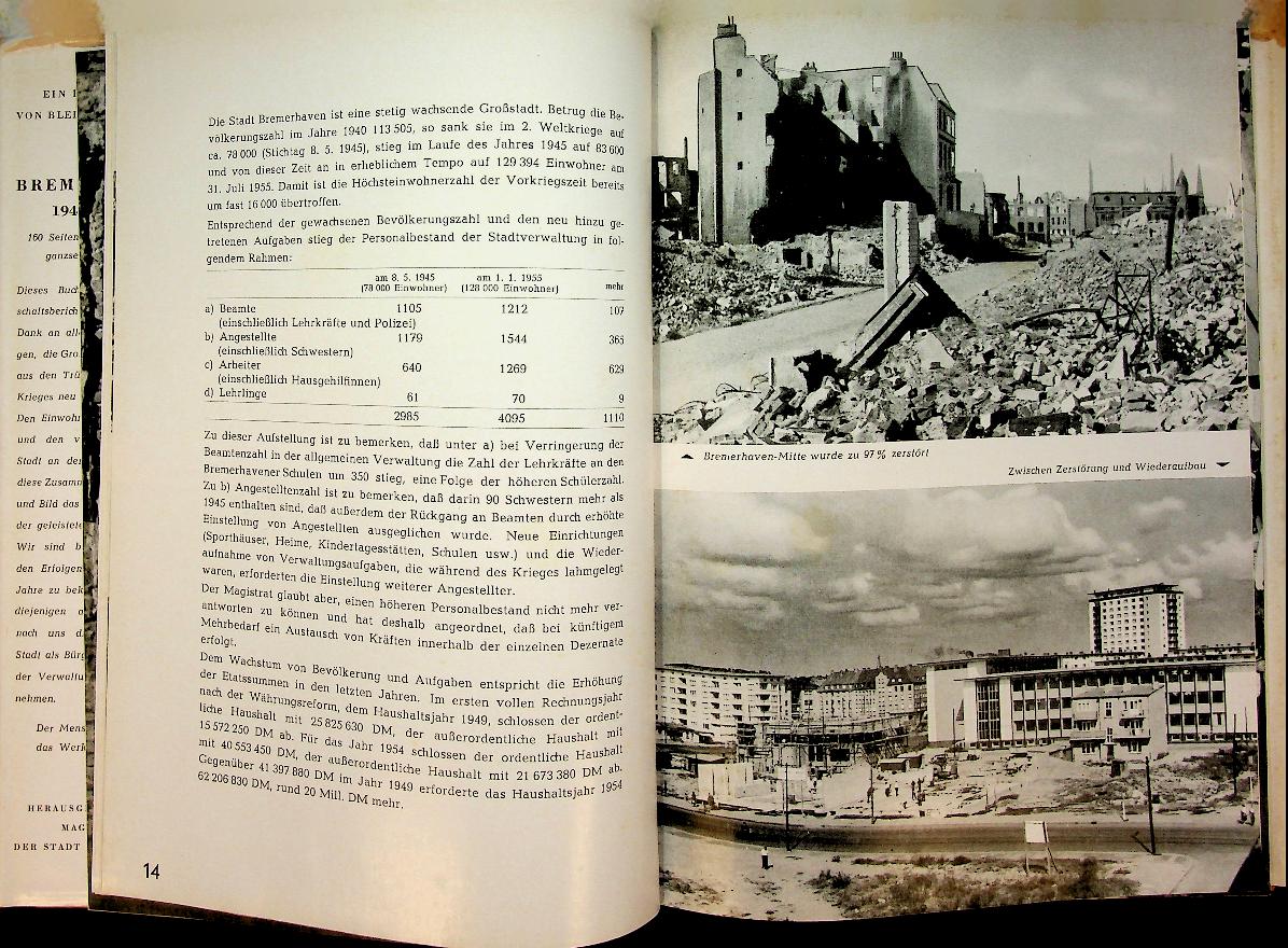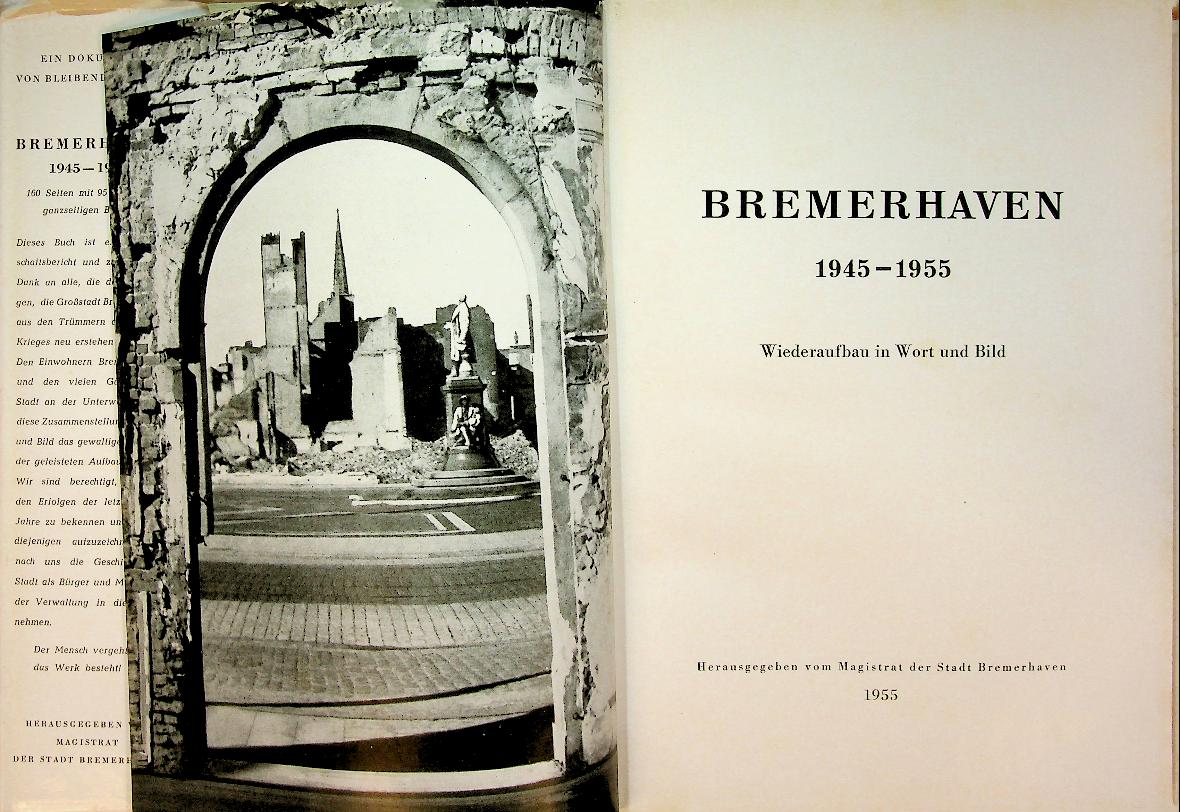Author unknown: 1955 Bremerhaven, hardcover with dustjacket 160 pages. Photobook of the rebuilding of Bremerhaven after the war. In very good condition. German language