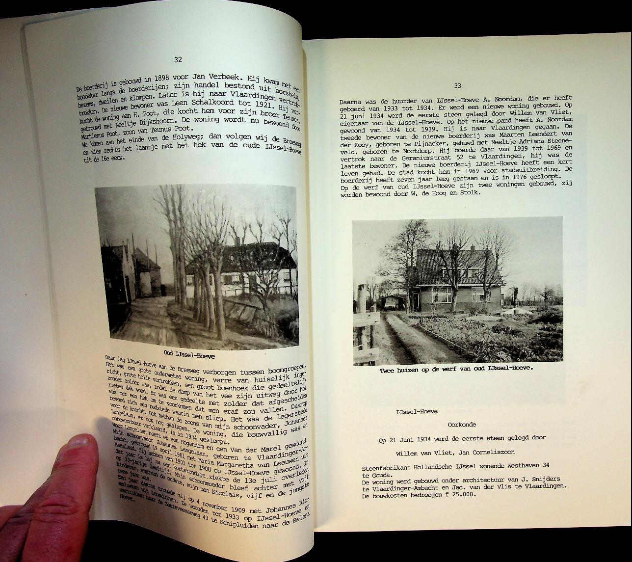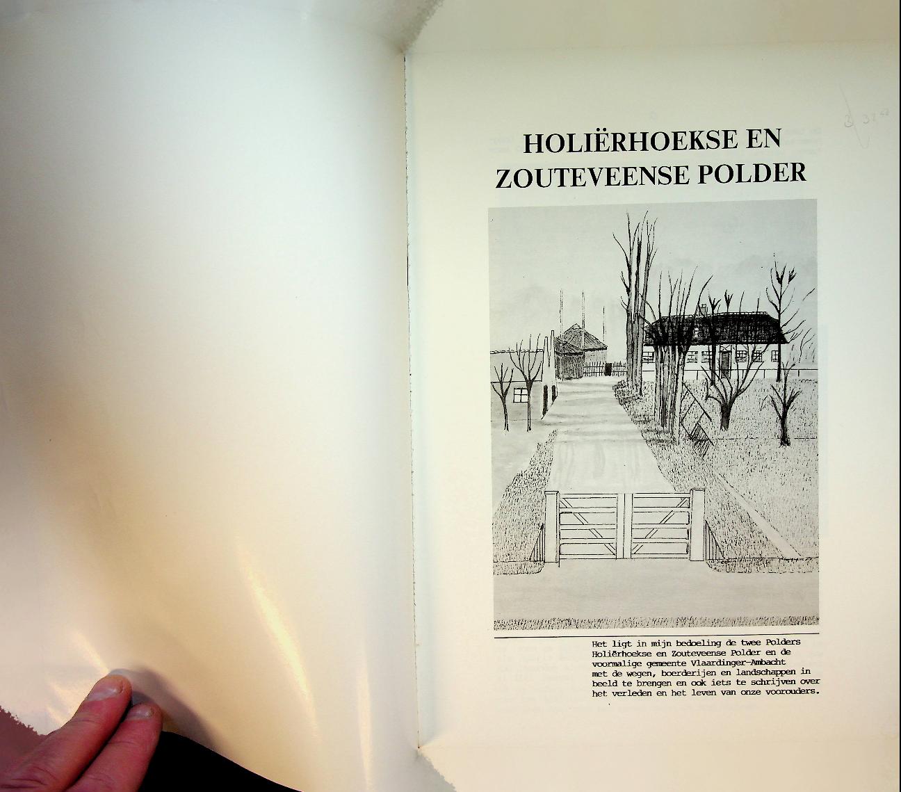 Langelaan- van der Lans, Th.A.M.: 1988 Vlaardingen, softcover 199 blz., met foto's. Het boek “Holierhoekse en Zouteveense Polder” van Th.A.M. Langelaan‑van der Lans beschrijft de geschiedenis van deze Midden‑Delflandse polders, met aandacht voor boerderijen, huizen, waterbeheer en het gebruik van het land. Het is een rijk geïllustreerd historisch-topografisch werk uit 1988, uitgegeven in Vlaardingen. In zeer goede staat.