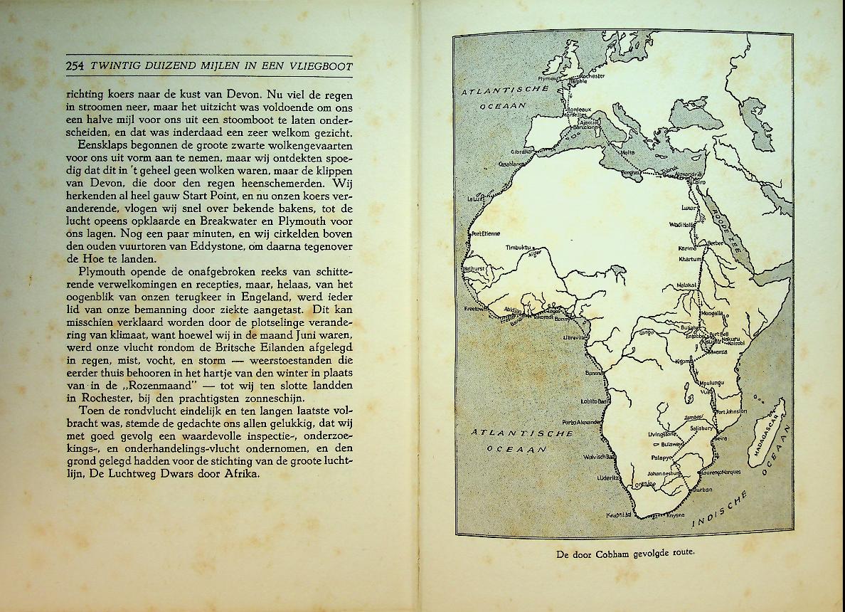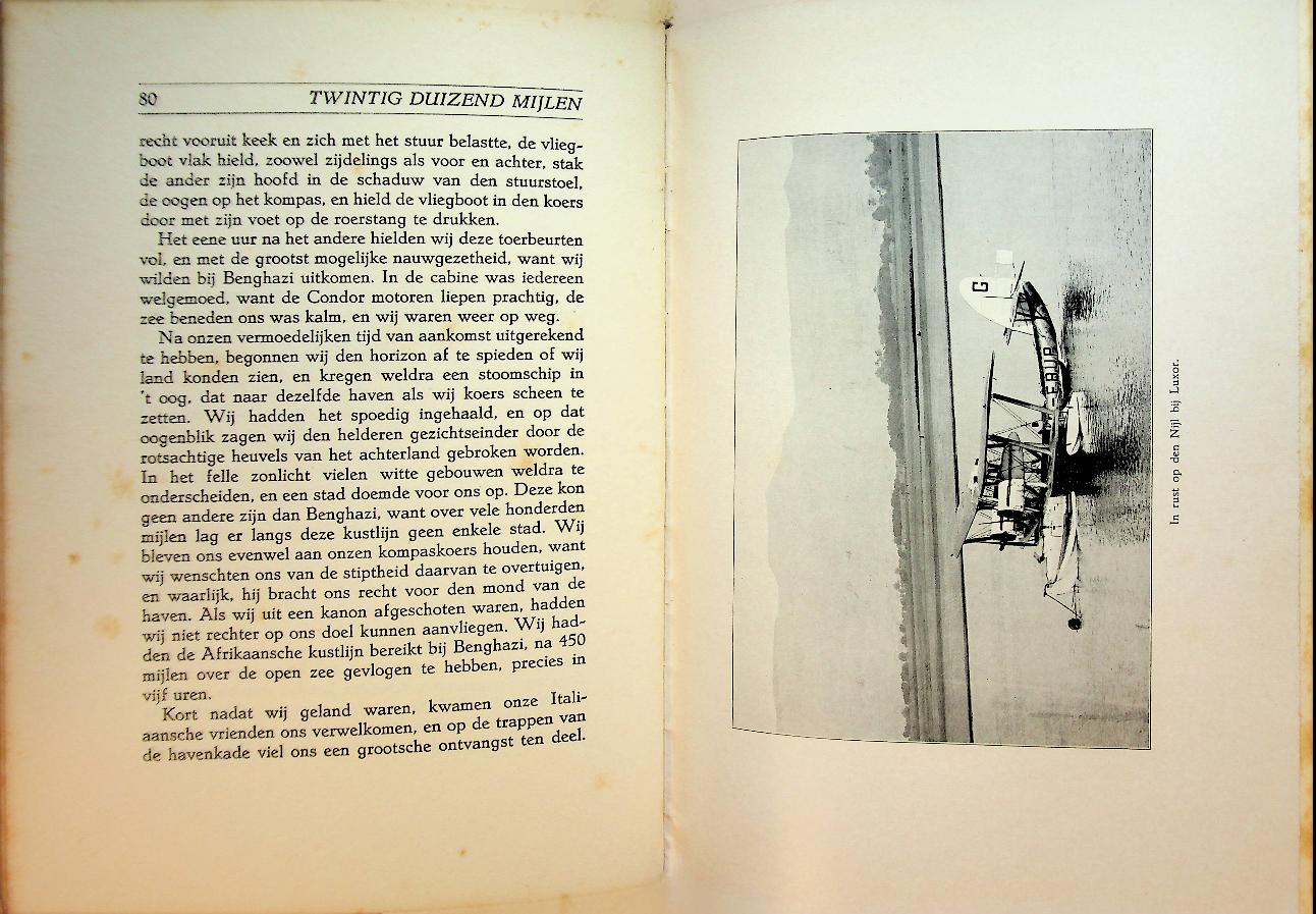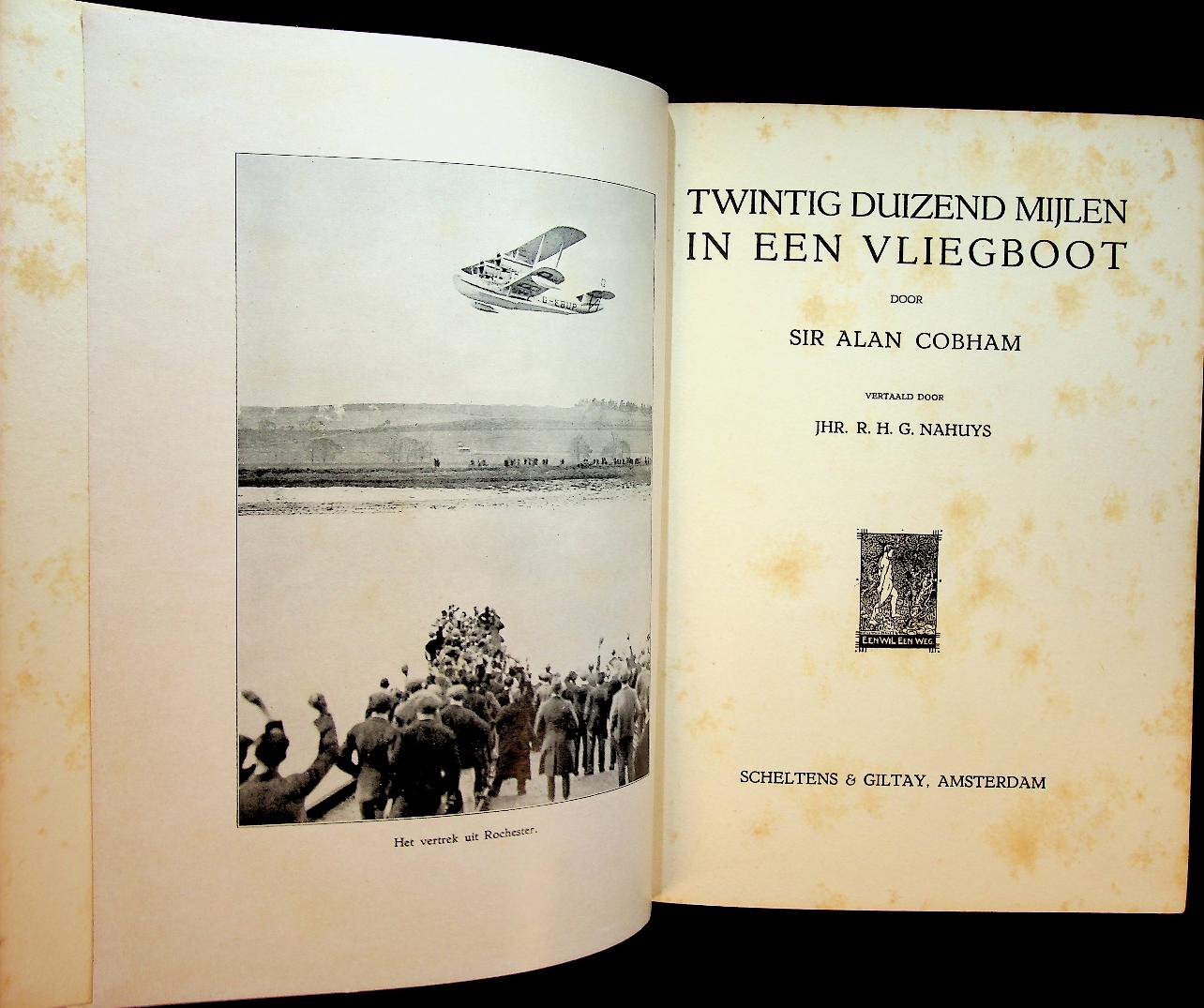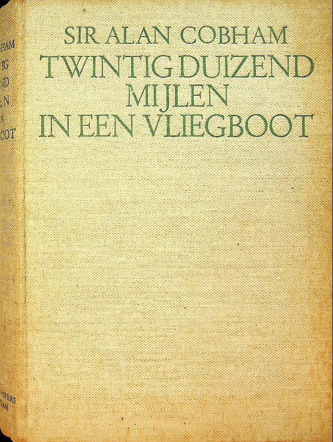 Cobham, A: ca. 1930 Amsterdam, hardcover, 254 blz., met kaarten en foto's. Het boek Twintig Duizend Mijlen in een Vliegboot van Sir Alan Cobham (Nederlandse titel, oorspronkelijk My Flight to the Cape and Back) verhaalt over Cobham’s baanbrekende vlucht van Londen naar Kaapstad en terug in 1925–1926, waarbij hij als een van de eersten een dergelijke zeer langeafstandsvlucht per watervliegtuig ondernam. Het boek beschrijft de technische uitdagingen, gevaren, ontmoetingen en fascinerende landschappen tijdens deze historische reis door Afrika, waarbij Cobham zich profileert als pionier van de vroege commerciële luchtvaart. In goede staat