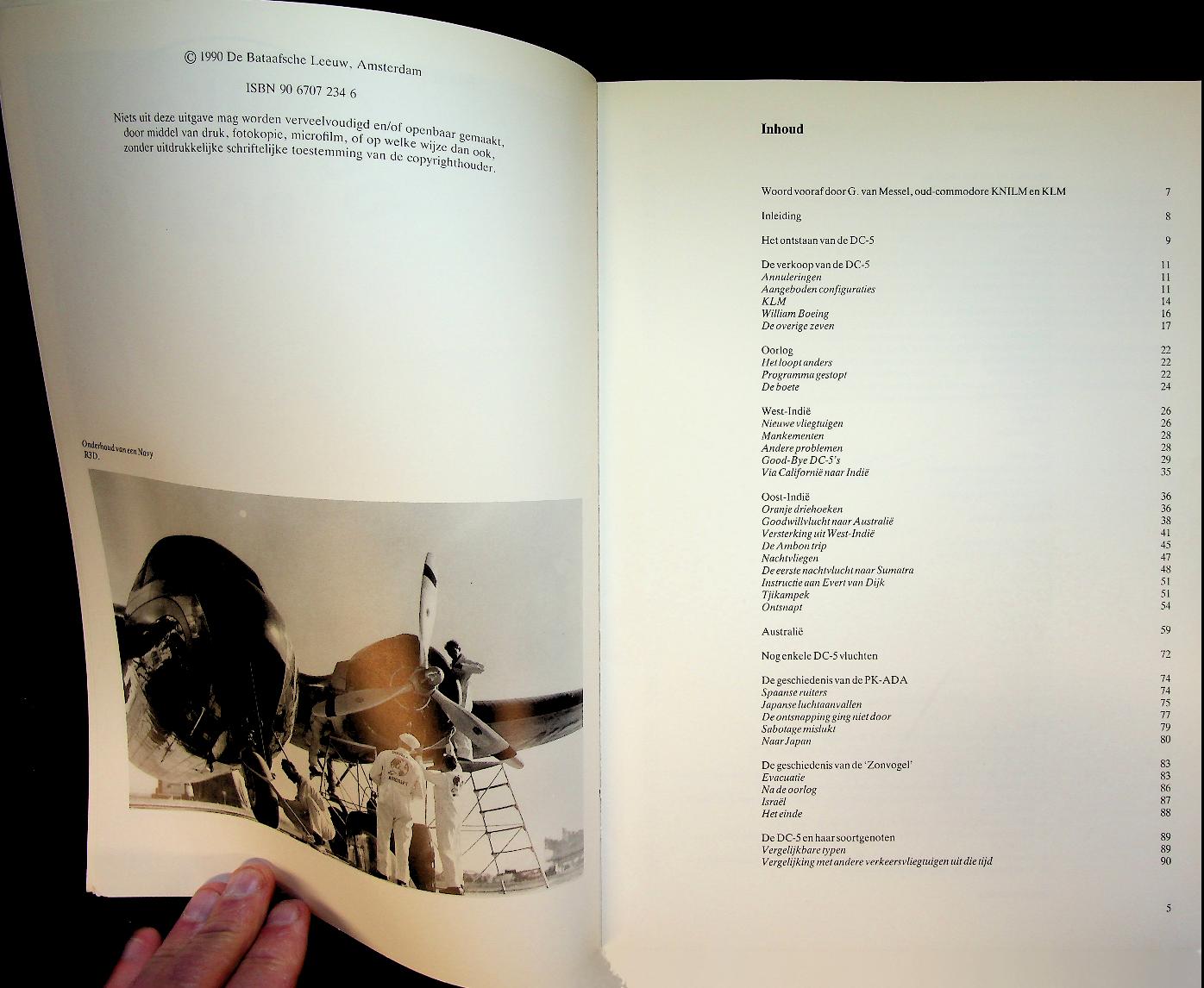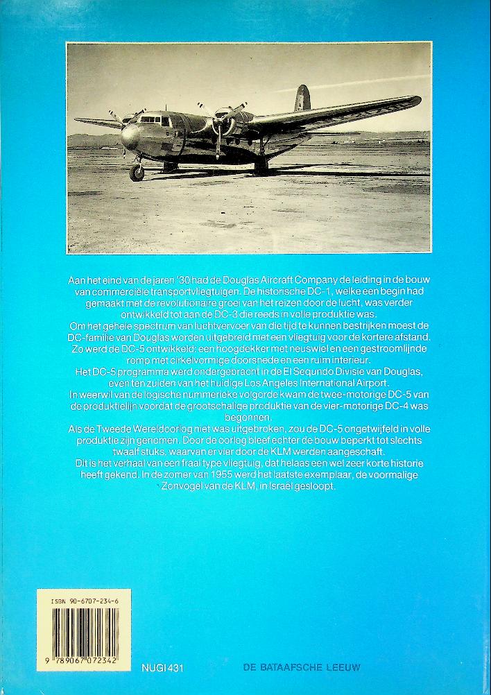Kok, Piet C.: 1990 Amsterdam, softcover 260 blz., geïllustreerd. De Douglas DC-5: een kort maar bewogen bestaan van Piet C. Kok beschrijft de korte ontwikkelings- en dienstgeschiedenis van dit zeldzame verkeersvliegtuig, met veel aandacht voor KLM, KNILM en de rol van de DC‑5 in oorlogstijd en naoorlogse jaren. Het rijk geïllustreerde boek behandelt ontwerp, techniek, inzet per maatschappij en de lotgevallen van de zeer kleine vloot, waardoor het vooral aantrekkelijk is voor kenners van klassieke luchtvaart en Nederlandse luchtvaartgeschiedenis. ISBN 9789067072342 In zeer goede staat