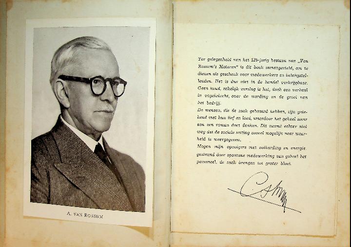 Rossum, A. van: 1947, hardcover, 221 blz.. Van Rossum’s Motoren N.V. 1822–1947 schetst de ontwikkeling van een Nederlands familiebedrijf van vroege ijzer- en machine-activiteiten in de 19e eeuw naar producent en servicepartner voor verbrandingsmotoren in transport en industrie, in een periode gemarkeerd door mechanisering, schaarste en innovatiegolven tot kort na de Tweede Wereldoorlog. Het boek plaatst bedrijfskeuzes en productlijnen in de context van de opkomst van automobiel- en machine-elektronica, onderdelenvoorziening en herstelpraktijken in Nederland, en laat zien hoe het bedrijf laveerde tussen technologische vernieuwing en economische conjuncturen tot 1947. In goede staat