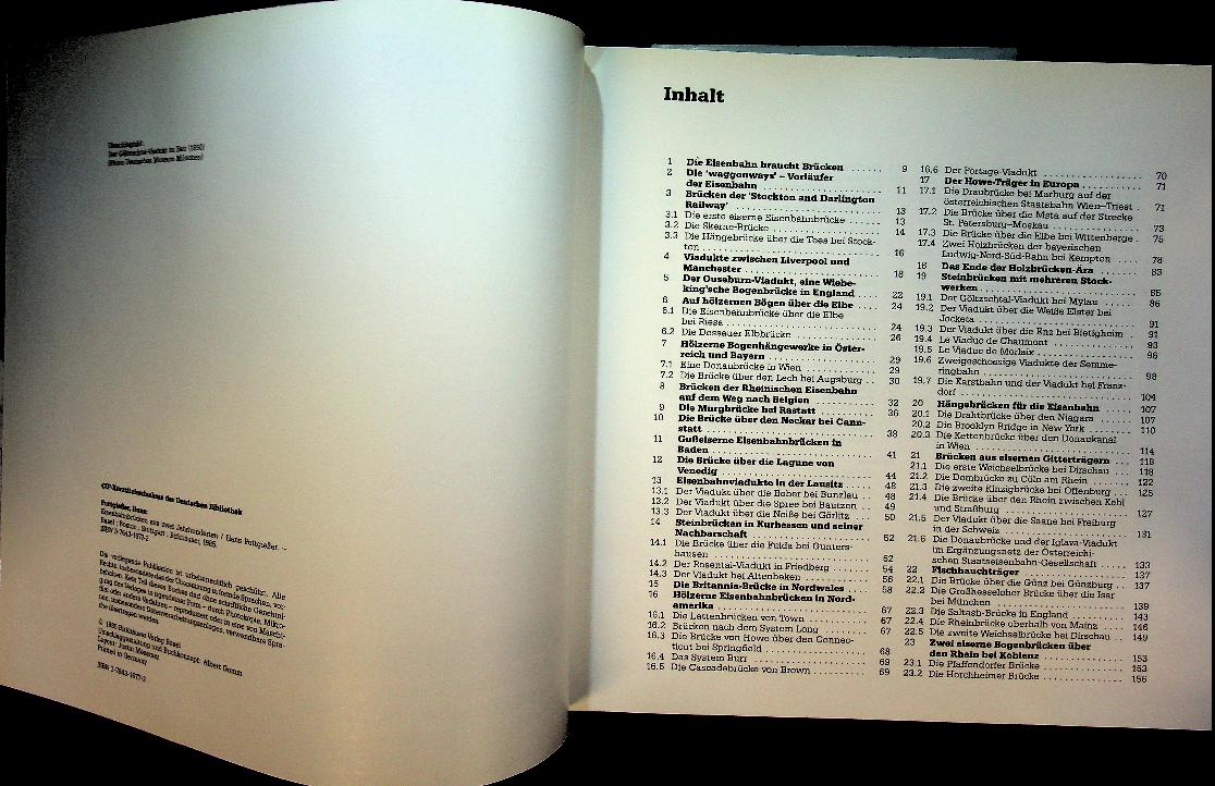 Pottgiesser, H: Birkhauser Basel, hardcover with dust jacket, 319 pages, with many photos and illustrations. An illustrated technical and historical survey of important railway bridges from the early days of railways in the 19th century up to the late 20th century, focusing on their engineering, construction methods and structural forms. The book documents numerous European examples in detail and has become a standard reference work for the development of railway bridge design and technology over roughly 200 years. ISBN 9783764316778 / 3764316772 In good condition