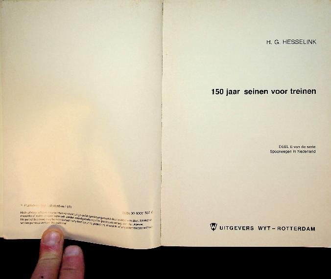 Hesselink, H.G.: 1978 Wyt Rotterdam, softcover, 199 blz., geïllustreerd. “150 jaar seinen voor treinen” van H.G. Hesselink is een rijk geïllustreerd overzicht van Nederlandse spoorwegseinen, bakens en borden van 1839 tot en met de moderne tijd, met ruim 200 foto’s en tekeningen uit Hesselinks eigen collectie. Het boek verscheen in 1978 als deel 6 in de reeks “Spoorwegen in Nederland” en beschrijft zowel de klassieke seinreglementen als de ontwikkeling naar lichtseinstelsels, met aandacht voor praktijkvoorbeelden en historische context. ISBN 9789060075678 / 9060075676 In goede staat