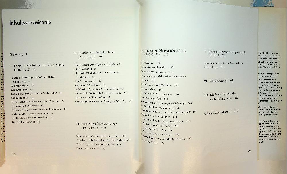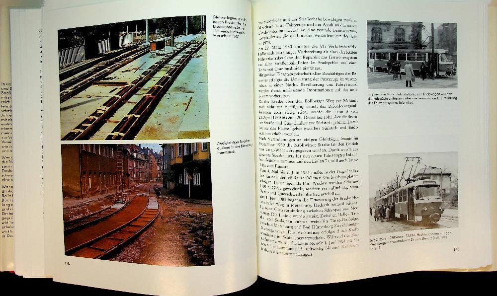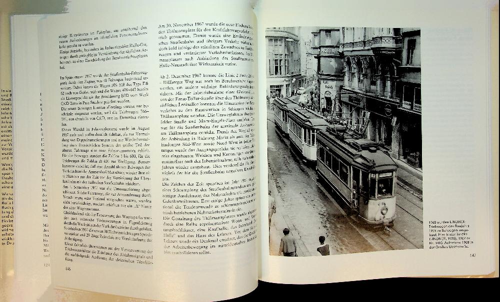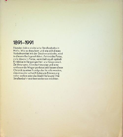 Schmidt, B.L.: 1991 Halle, hardcover with dust jacket, 256 pages, illustrated with many photos and maps. “100 Jahre elektrisch durch Halle” is an illustrated centennial history of Halle’s electric tramway, tracing its evolution from early electrification to modern operations with route changes, rolling stock developments, and the system’s role in urban growth. It combines archival photographs, maps, lists of trams and technical notes with narrative chapters on company organization, wartime impacts, postwar reconstruction, and late-20th-century upgrades to show how the network shaped the city’s mobility and identity. In good condition. German language