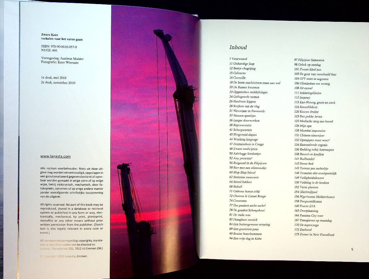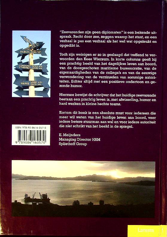 Wiersum, Kees: 2010 Lanasta Emmen, hardcover 176 blz., met foto's, de verhalen van een zeevarende. Zware Kees van Kees Wiersum is een bundel korte, vaak humoristische columns en anekdotes waarmee een Nederlandse kapitein op zware‑ladingschepen het alledaagse leven aan boord, de eigenaardigheden van de bemanning en de doorgeschoten maritieme bureaucratie scherp neerzet. De verhalen nemen de lezer mee van de Zuid‑Chinese Zee tot de Amazone en het drijfijs bij Siberië, en schetsen tegelijk een herkenbaar, toegankelijk beeld van de moderne zeevaart en haar cultuur. ISBN 9789086160570 In zeer goede staat