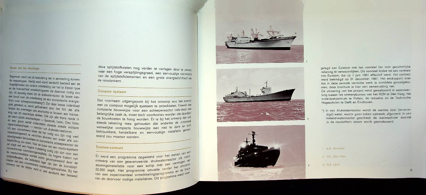 Reactor Centrum Nederland: Ongeveer 1967, softcover 28 blz.. Uitgewerkt onderzoeksrapport in begrijpelijk Nederlands over de toepassing van nucleaire energie voor scheepsvoortstuwing. Met foto's en illustraties. In goede staat