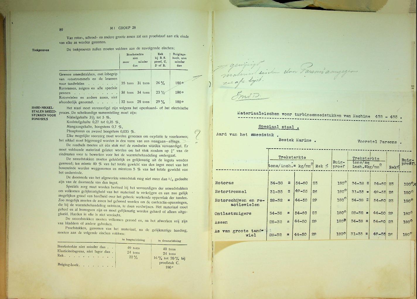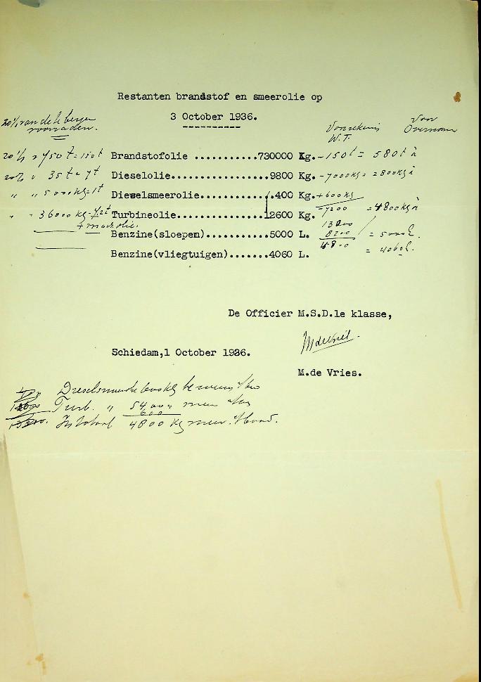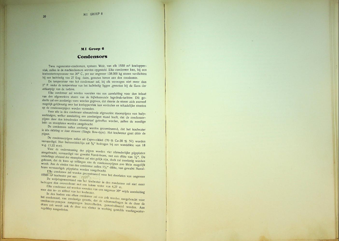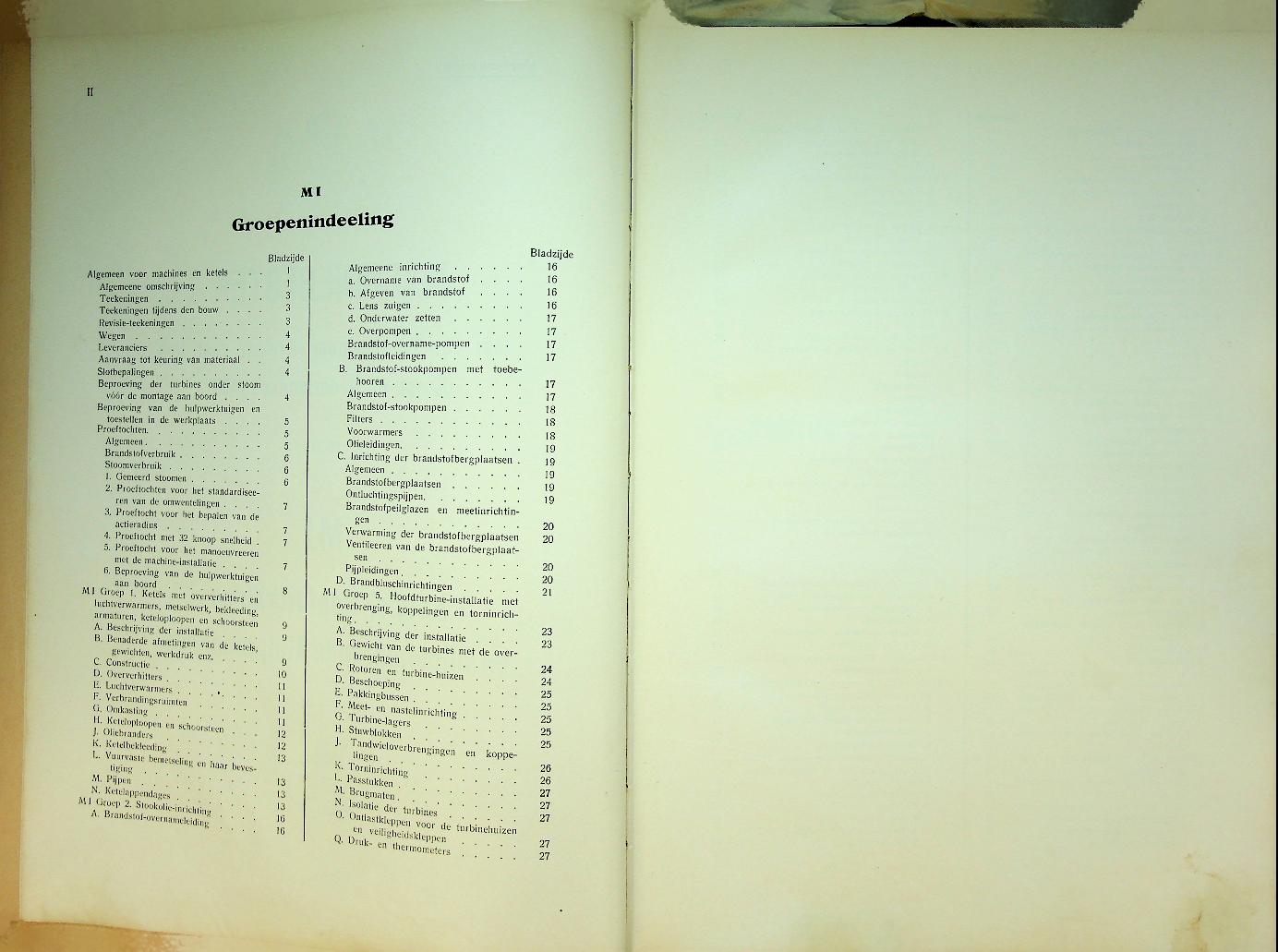 Auteur onbekend: In drie delen, met als officiele titel op elke hardcovermap, Scheepsbestek voor een beschermden kruiser voor den dienst in Nederlandsch-Indie. 1e deel, Scheepsbestek S1-4 van het IVS, met daarin de complete bouwrichtlijnen voor het te bouwen schip, gekartonneerd 124 blz. 2e deel, Machine bestek MI-MII, +/- 120 blz. M1 betreft, de motoren, M2 betreft de scheepshulpmachines. met daarbij de correspondentie over een aantal zaken betreffende de bouw van het schip (latere jaren gedateerd) van De Schelde, Wilton-Fijenoord Yarrow and Co Glasgow. M III, dit derde deel betreft de electrische installatie, hardcover 101 blz..,. Het gehele bestek van dit schip is compleet. In de bijbehorende correspondentie heeft men het over ''De Ruyter'', waaruit blijkt dat dit scheepsbestek voor de latere De Ruyter is.
